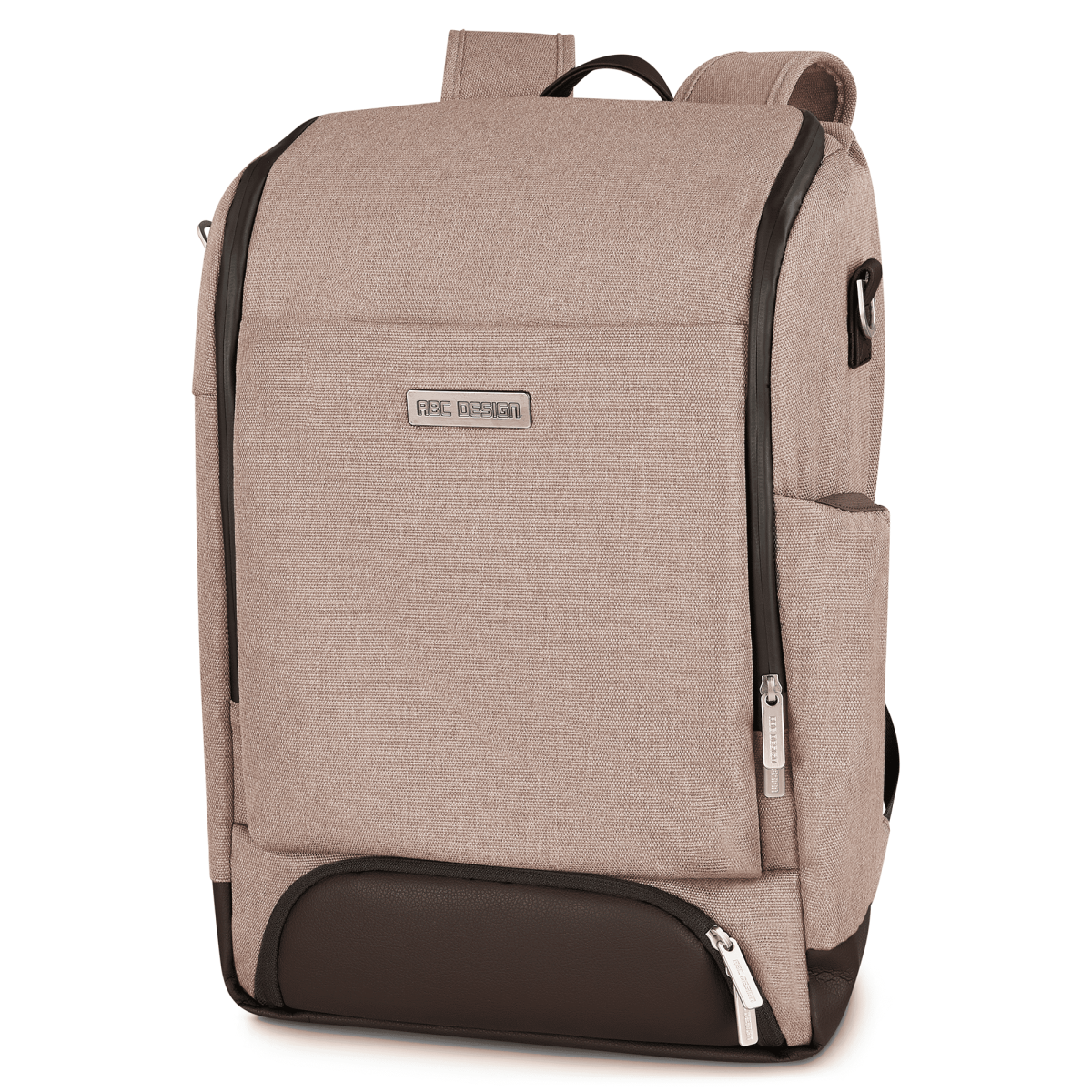 Mit im Lieferumfang enthalten sind eine hygienische Wickelunterlage für unterwegs, eine Etui-Tasche sowie ein isolierter, herausnehmbarer Flaschenhalter. Das große nach vorne öffnende Hauptfach bietet ausreichend Platz – ideal für einen Einkauf in der Stadt oder für einen ausgiebigen Spaziergang. Auch auf Reisen macht der Rucksack eine gute Figur und wird mit dem Koffergurt auf der Rückseite zum praktischen Reisegepäck.