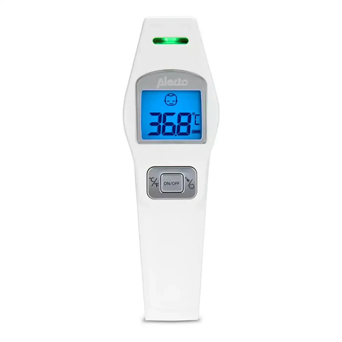 Dieses Infrarot Stirnthermometer BC-37 von Alecto baby misst die Temperatur deines Kindes auf der Stirn. Nichts, was für dein Baby unangenehm sein könnte. Die Messung ist schnell und einfach und du kannst die Anzeige auf Grad oder Fahrenheit einstellen. Steigt die Temperatur deines Kindes über 37°C informiert das Thermometer dich über einen Ton und rotes Licht auf dem Display. Das Stirnthermometer ist einfach in der Handhabung und speichert sogar die letzten 20 Messwerte.