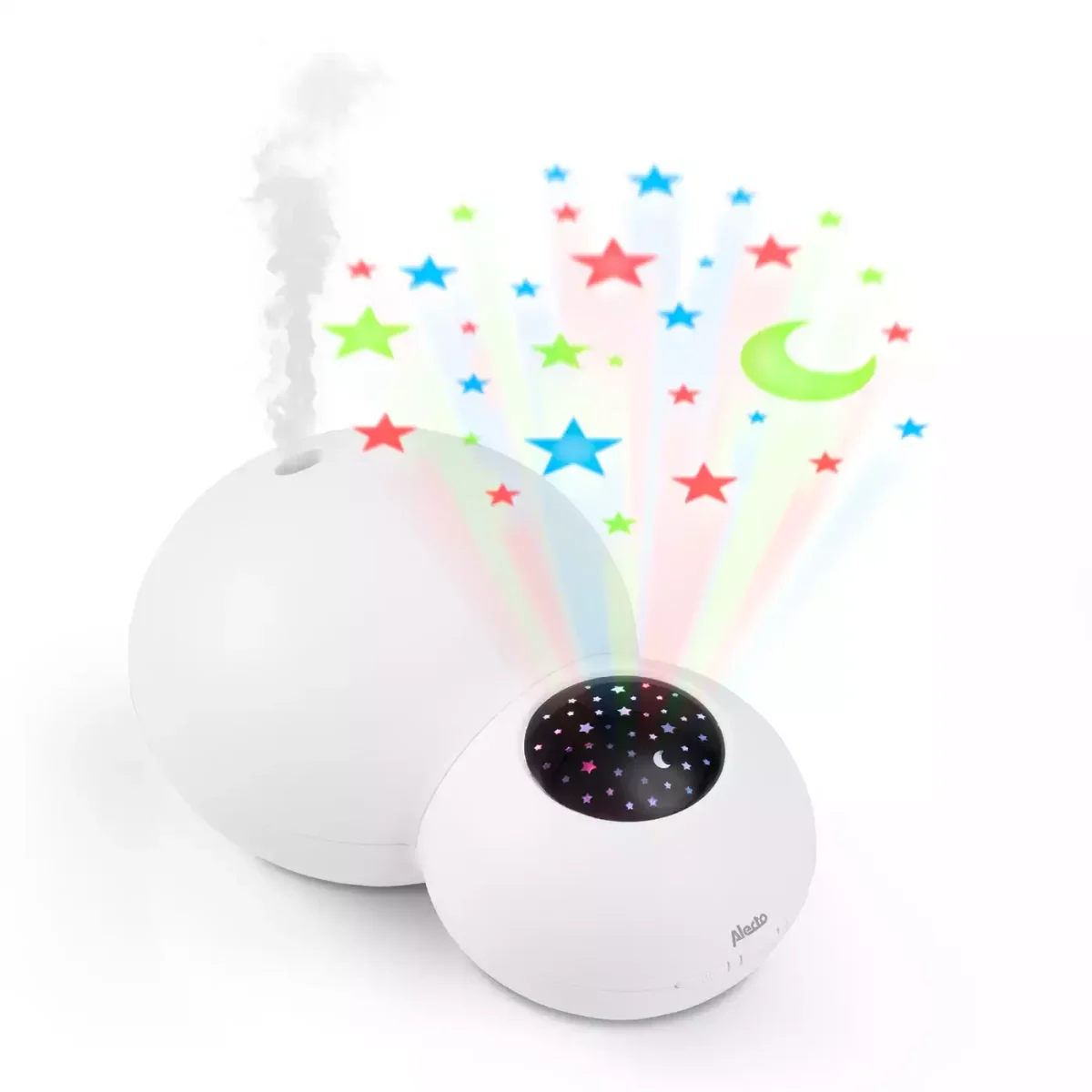 Der Luftbefeuchter und Projektor von Alecto baby sorgt mit seiner besonderen Ultraschall/Kühldampf-Technologie für eine optimale Luftfeuchtigkeit im Kinderzimmer. Gleichzeitig wird dank dem Sternhimmelprojektor eine wundervolle Schlafatmosphäre kreiert.