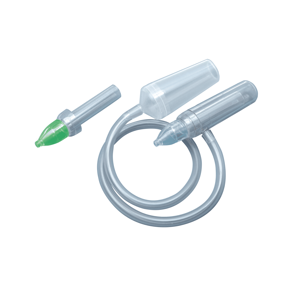 Der Baby Schnupfen ist eine bei Babys und Kleinkindern sehr häufig auftretende und unangenehme Erkrankung. Denn in den ersten Lebensjahren können sich die Kleinen noch nicht die Nase vom entstandenen Sekret befreien, da ihnen der entsprechende Reflex fehlt. Unwohlsein, Schlaf- und Essprobleme sowie Folgeerkrankungen der Ohren, der Nasennebenhöhlen und des Luftwegs sind häufige Begleiterscheinungen. Der Angel-Vac wurde speziell für diese Problematik entwickelt und ermöglicht den Eltern das schonende Absaugen des Nasensekrets unter heimischen Bedingungen. Angeschlossen wird der Angel-Vac an einen handelsüblichen Staubsauger. Die besondere Konstruktion des Angel-Vac reduziert den Saugeffekt auf die Stärke eines einfachen Schnäuzens. Bei der Anwendung entsteht ein Vakuum, so dass die Nase des kleinen Patienten schonend und wirksam vom Sekret befreit wird.