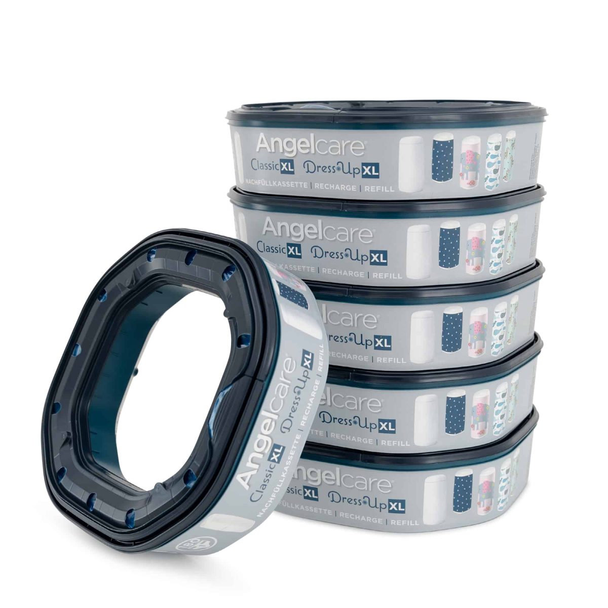 Das 6er Pack der Angelcare® Nachfüllkassette XL eignet sich optimal für die Angelcare® Windeleimer Dress-Up, Dress-Up XL und Classic XL.Der 7-fach, antibakteriell beschichtete Angelcare® Folienschlauch mit OdourSeal-Technologie ist mit einer Geruchsbarriere ausgestattet. Diese sorgt dafür, dass sich unangenehme Düfte und Keime nicht ungehindert ausbreiten. Außerdem werden die Windeln mit dieser Kassette nicht einzeln in Folie eingedreht, sondern in einem Schlauchstück gesammelt. Dieses Verfahren ist umweltschonender, da erheblich weniger Folie verbraucht wird. Eine Windelkassette von Angelcare® reicht für ca. 180 Windeln.