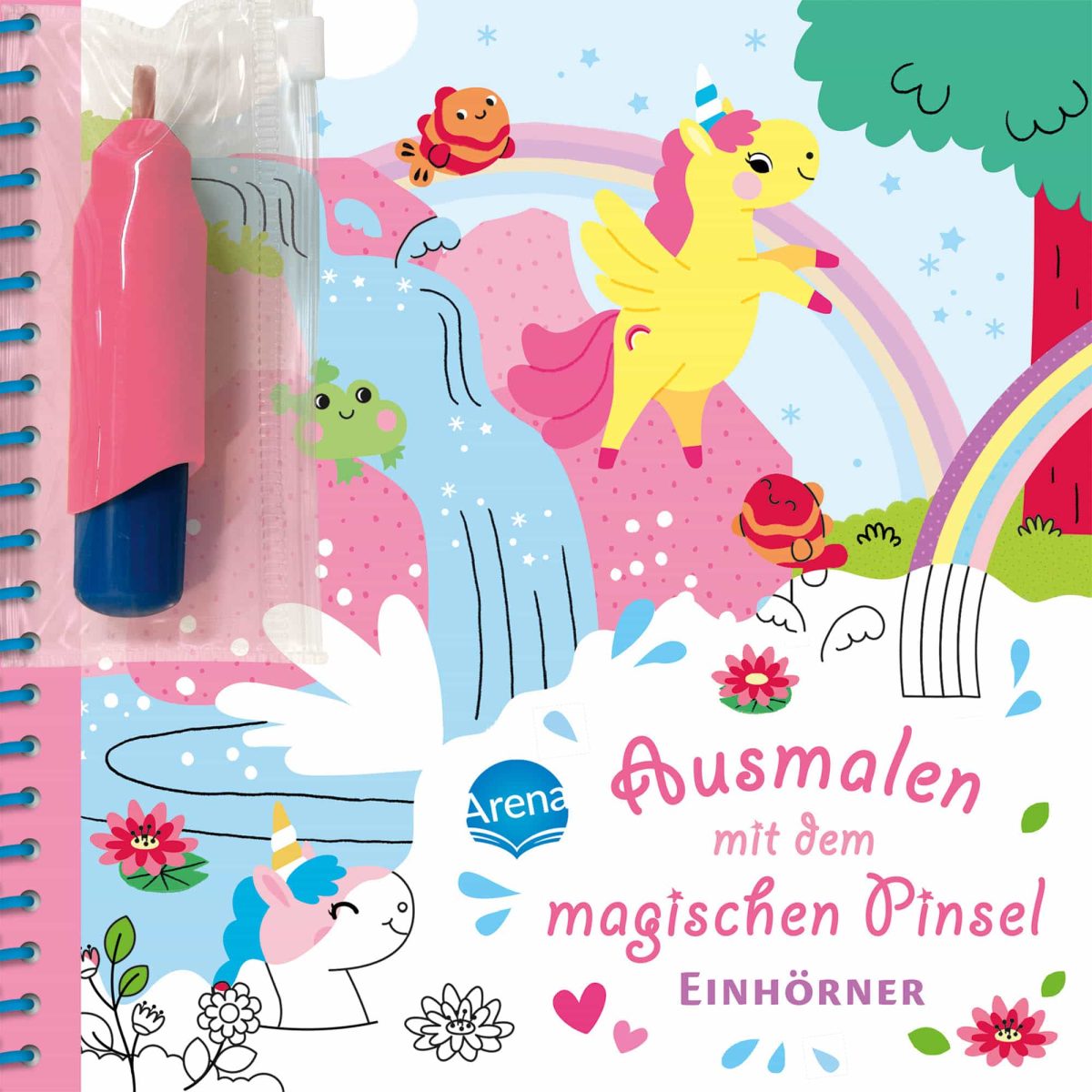 Die Neuheit für die Jüngsten: Mit Wasser malen – ganz ohne Flecken! 6 Malbilder mit „Zaubereffekt“ zum Thema Einhörner – mit kleinen Suchspielen. Die Ausmalseiten zeigen schwarz-weiße Motive. Sobald sie mit dem Pinsel befeuchtet werden, erstrahlen die Seiten in bunten Farben und zeigen noch weitere versteckte Motive. Nach dem Trocknen verschwinden die Farben und die Seiten können erneut ausgemalt werden.