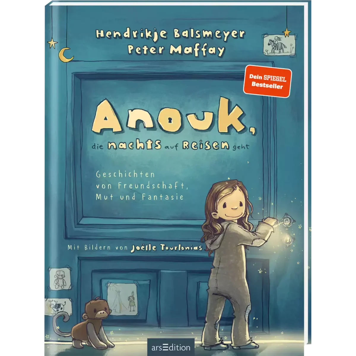 In dem Kinderbuch „Anouk, die nachts auf Reisen geht“ sind sieben spannende Gutenachtgeschichten enthalten. Anouk erlebt Nacht für Nacht neuerdings aufregende Abenteuer. Ob im Zirkus, bei den Piraten, auf dem Bauernhof oder auf der großen Bühne – überall findet Anouk neue Freunde.