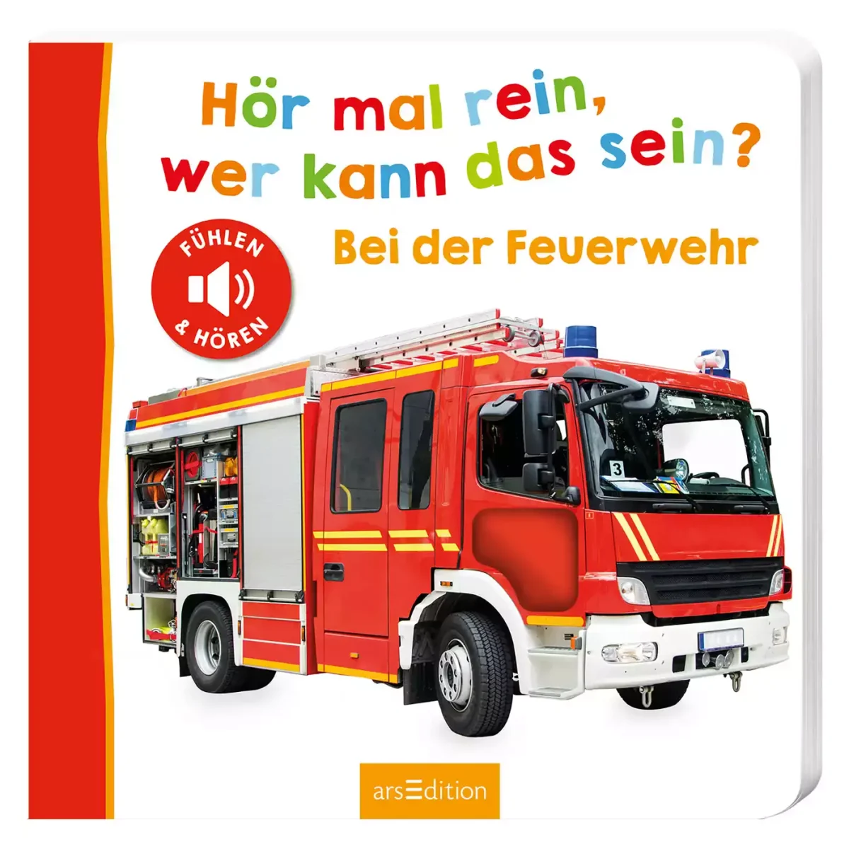 Wie klingt die Sirene des Feuerwehrautos? Tatütata! Tatütata! Mit Blaulicht und Sirene rückt die Feuerwehr mit dem gesamten Löschzug an. Sofort rollen die Feuerwehrleute die Schläuche aus. Nun heißt es: „Wasser marsch!“ Und wie klingt der Wasserstrahl? Hier kannst du die Feuerwehrleute bei verschiedenen Einsätzen begleiten. Berühre einfach die Tür des Rettungswagens oder die Tasten des Funksprechgerätes und schon wird die Feuerwehrszene lebendig. Auf jeder Doppelseite wird ein Feuerwehreinsatz mit vielen anschaulichen Fotos und einem kurzen Sachtext vorgestellt. Das Fühlelement lädt zum Entdecken ein und beim Darüberstreichen wird das passende Geräusch ausgelöst. Das ist nicht nur spannend, sondern fördert auch die Hand-Auge-Koordination, die Lautbildung und das Sprechen.