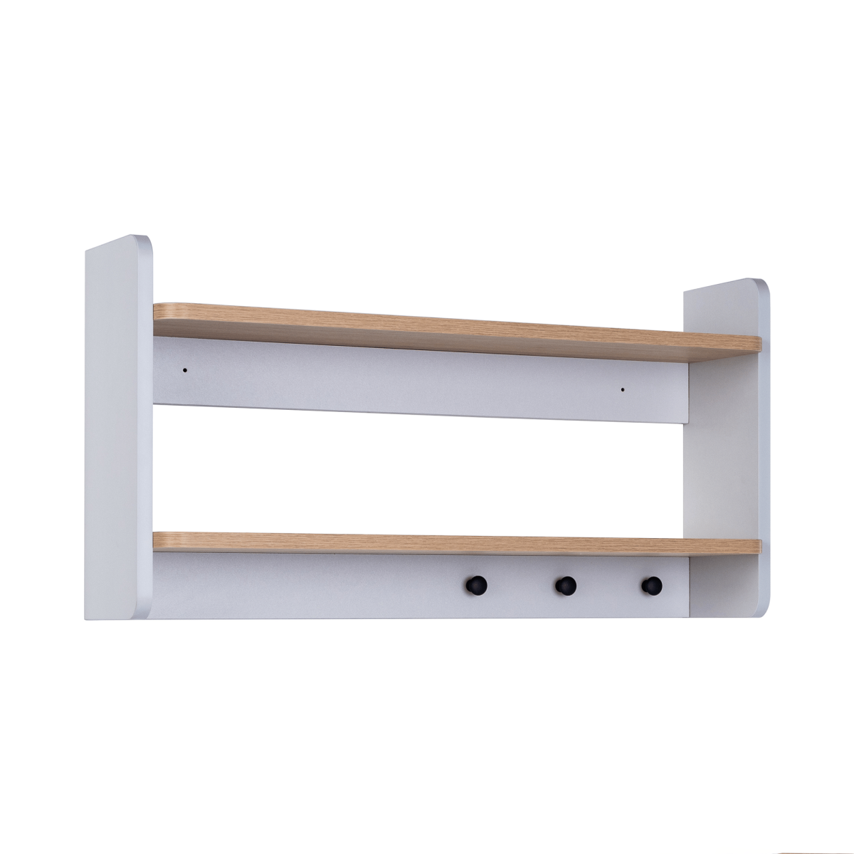 Das Wandregal Lovis von Arthur Berndt bringt Ordnung und Stil in jedes Baby- und Kinderzimmer. Mit seinem modernen und praktischen Design bietet das Regal vielseitigen Stauraum für kleine Utensilien, Pflegeprodukte oder Dekorationen. Die zwei geräumigen Böden sind ideal, um alles griffbereit zu haben, während die drei integrierten Haken zusätzlichen Platz für Handtücher, Kleidung oder Spielzeug bieten.
