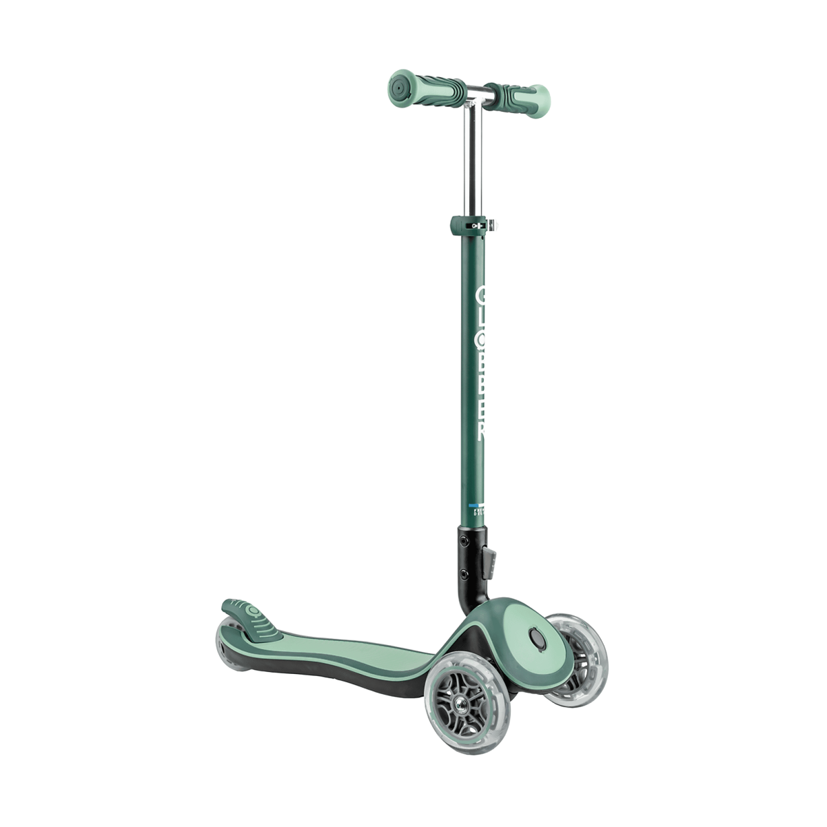 Niemand fährt geschmeidiger und cooler über den Bürgersteig als dein kleiner Liebling auf dem Roller Elite Deluxe Lights von GLOBBER. Mit Lichtgeschwindigkeit saust dein Kind über den Asphalt, denn die leuchtenden PU-Vorderräder des Rollers funkeln wie kleine Sterne und das ganz ohne Batterien, nur durch die clevere Dynamo-Technologie. Und das beste daran ist, dass man dank der leuchtenden Rollen deinen kleinen Flitzer auch in der Dämmerung immer gut sehen kann.