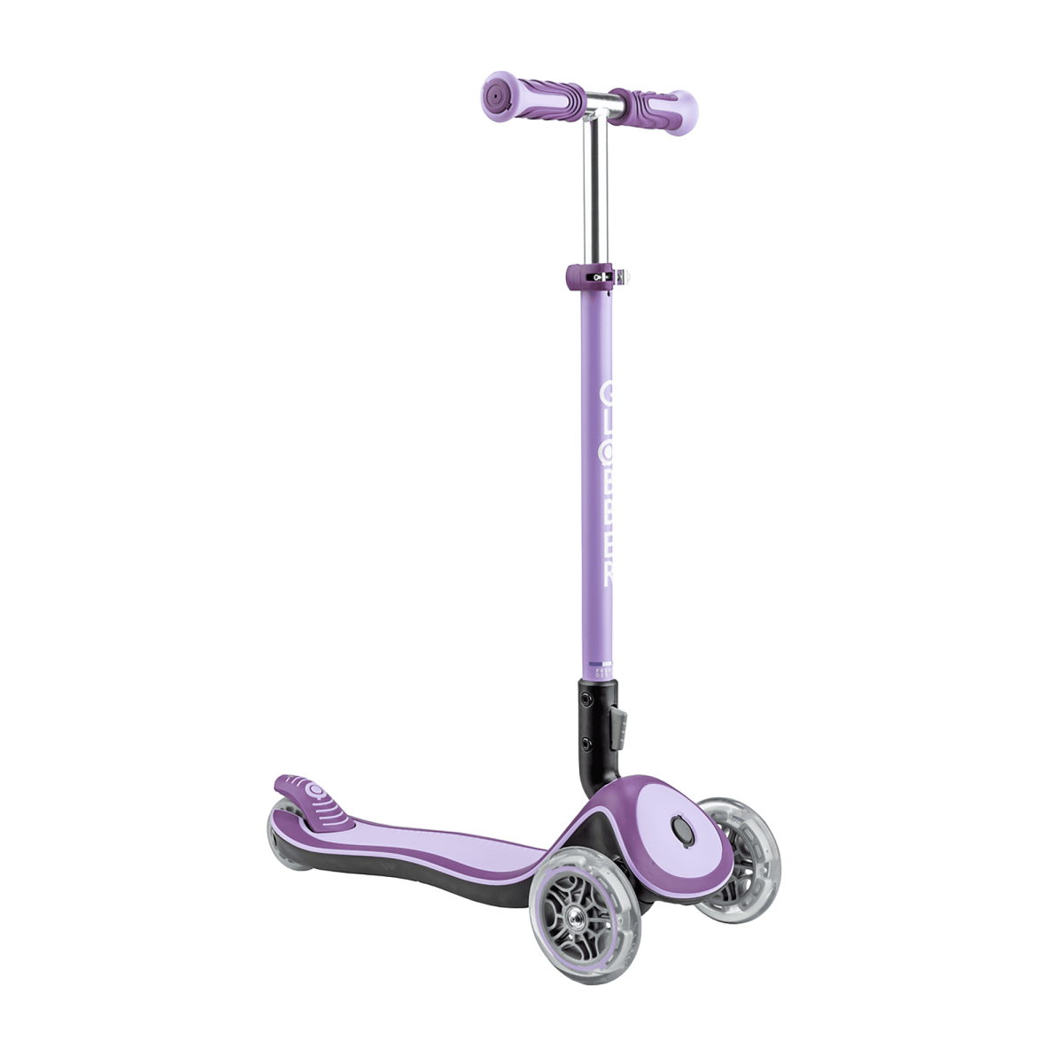 Niemand fährt geschmeidiger und cooler über den Bürgersteig als dein kleiner Liebling auf dem Roller Elite Deluxe Lights von GLOBBER. Mit Lichtgeschwindigkeit saust dein Kind über den Asphalt, denn die leuchtenden PU-Vorderräder des Rollers funkeln wie kleine Sterne und das ganz ohne Batterien, nur durch die clevere Dynamo-Technologie. Und das beste daran ist, dass man dank der leuchtenden Rollen deinen kleinen Flitzer auch in der Dämmerung immer gut sehen kann.