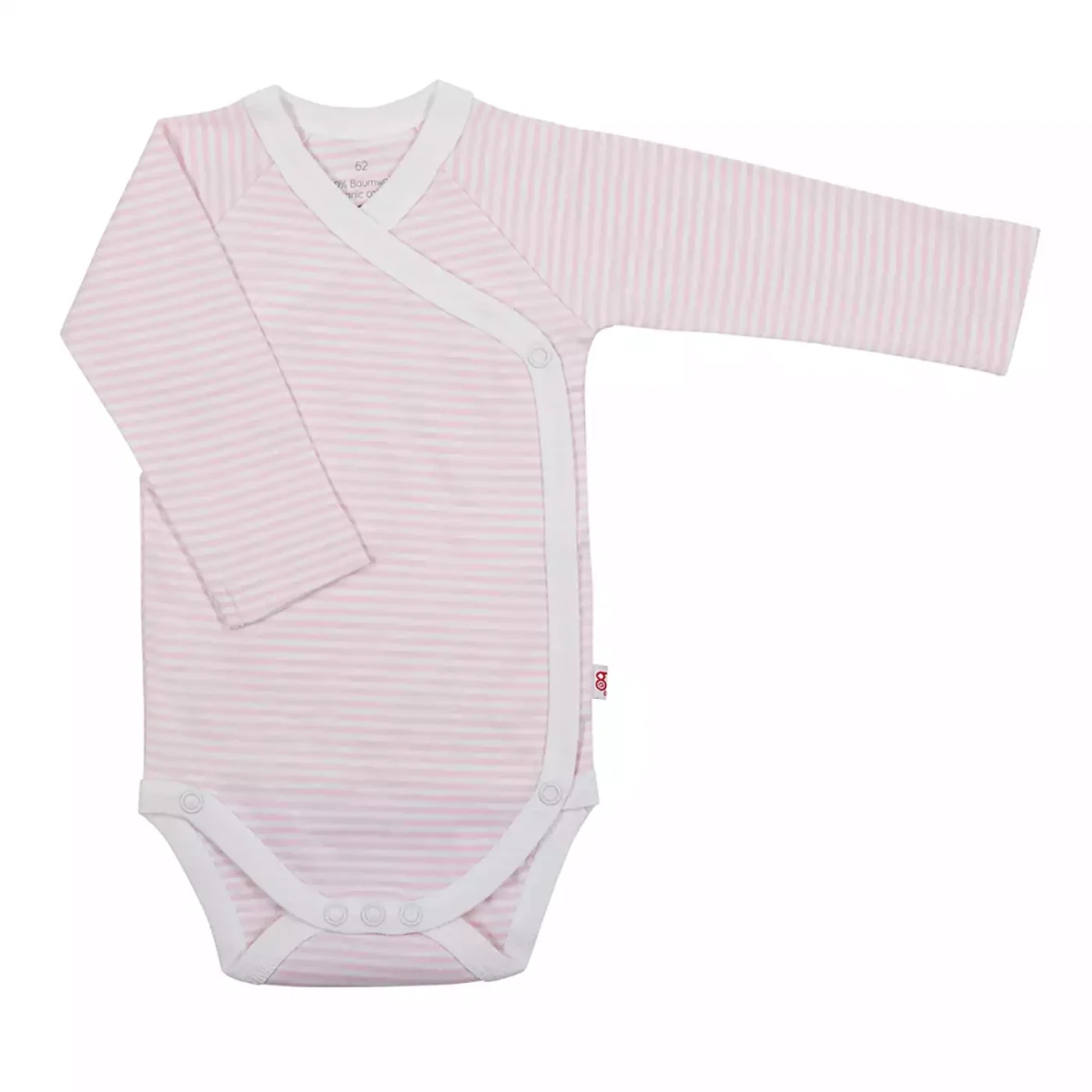 Der Wickelbody langarm von B.O.WirbelWind lässt sich vielseitig kombinieren. Er ist hellrosa weiß gestreift und besteht aus weicher Baumwolle. Zusätzlich wird dies nach den strengen Kriterien von GOTS überprüft und die Ware ist entsprechend zertifiziert.
