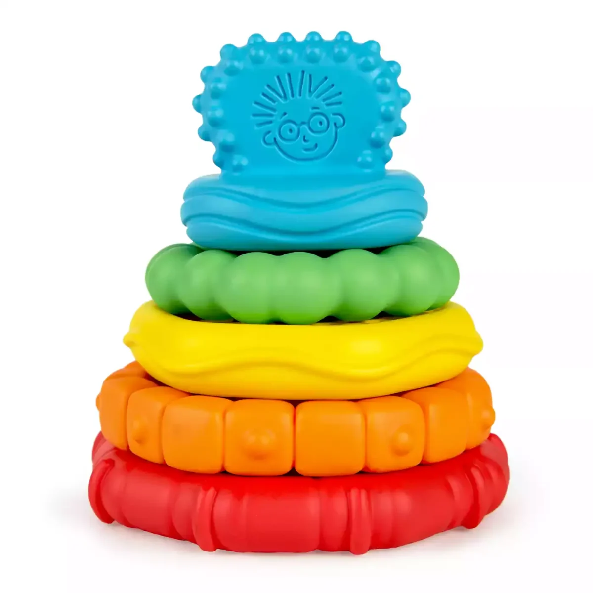 Mit dem Stack & Teethe™ Beißring kann dein kleiner Schatz neue Oberflächenstrukturen entdecken. Die insgesamt 5 unterschiedlichen Ringe lindern Zahnfleischschmerzen und fördern die motorischen Muskeln. Mit dem Stack & Teethe™ Beißring-Spielzeug von Baby Einstein kann dein Kind außerdem seine Stapelfähigkeiten üben.