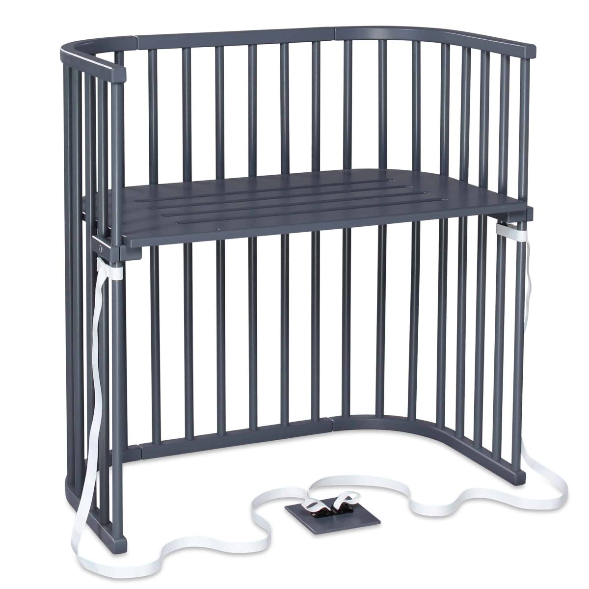 Das Beistellbett babybay Boxspring in schiefergrau ist die Lösung für alle hohen Betten. Dank der hohen Bauweise und der patenten stufenlosen Höhenverstellung lässt sich die Liegefläche exakt an hohe und rahmenlose Boxspringbetten anpassen. So kannst du deinem kleinem Schatz immer nah sein.