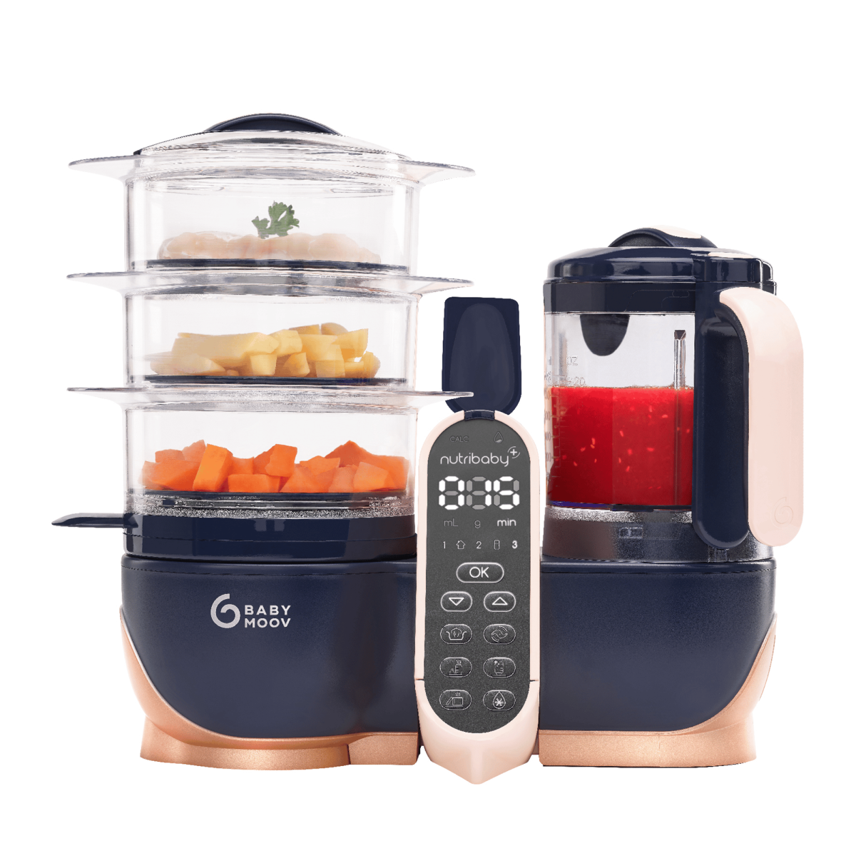 Der Nutribaby + XL von Babymoov bietet dir fünf Geräte in einem: Flaschenwärmer, Sterilisator, Dampfgarer, Mixer und eine Auftaumöglichkeit von Babykost. Ausgestattet mit einem praktischen LCD-Display und 10 Automatikprogrammen funktioniert der Nutribaby + nach dem cleveren Bedienprinzip: 1 Taste = 1 Funktion. Der Nutribaby überzeugt durch seine vielseitigen Nutzungsmöglichkeiten und ein XXL-Fassungsvermögen.
