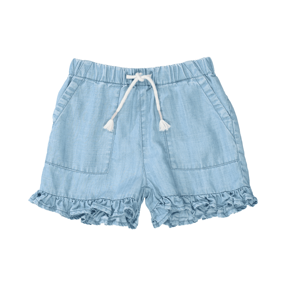 Die Denimshorts von Basefield ist ein sommerliches Must-have für kleine Fashionistas. Der leichte Lyocell-Stoff liegt angenehm weich auf der Haut und sorgt für ein luftiges Tragegefühl – ideal für warme Tage. Liebevolle Details wie die Rüschen am Saum und der Kordelzug mit Quasten machen die Shorts zu einem echten Hingucker. Dank elastischem Bund lässt sich die kurze Hose kinderleicht an- und ausziehen.
