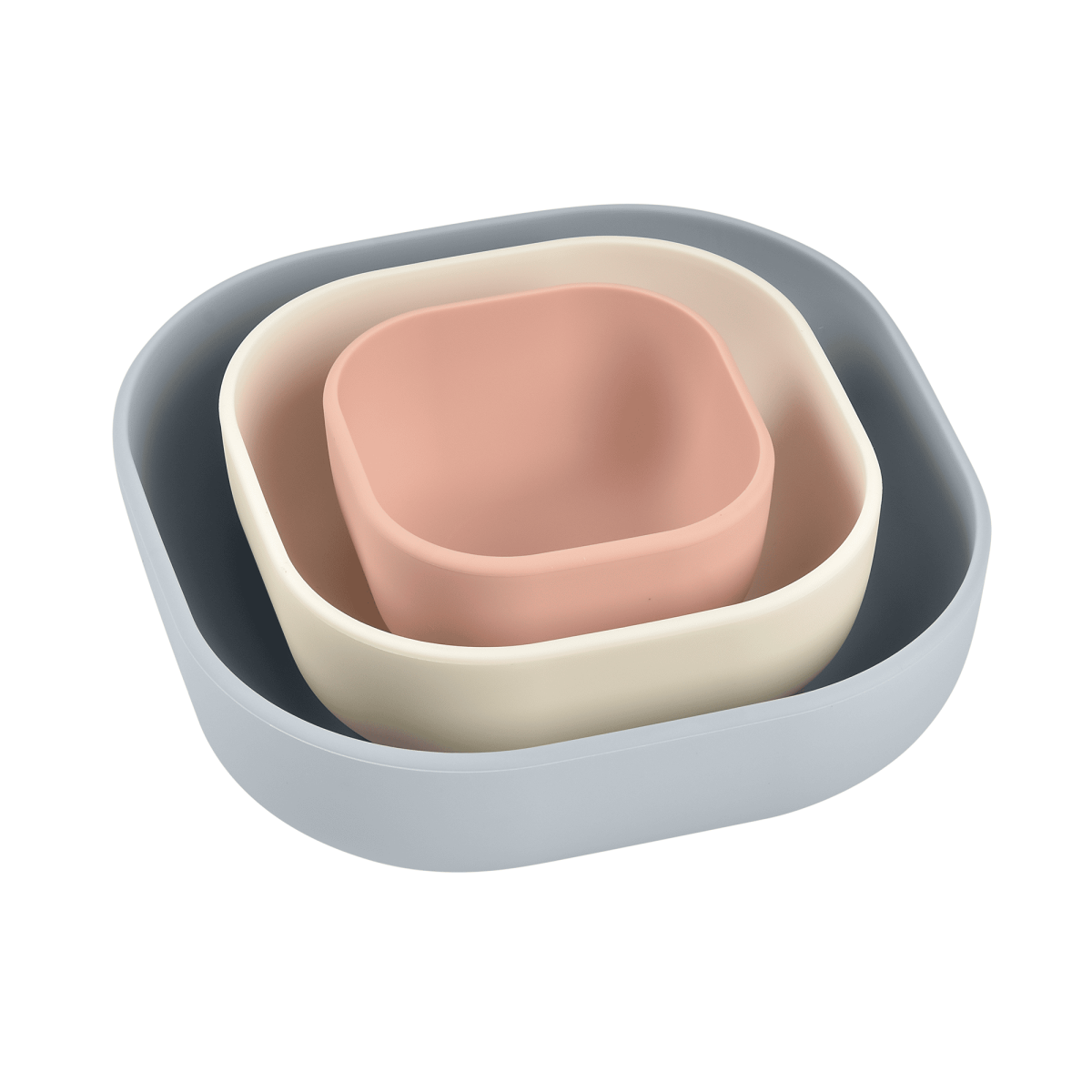 BÈABA 3er Set Silikon-Schussel Velvet Grau/Cotton/Hellrosa
