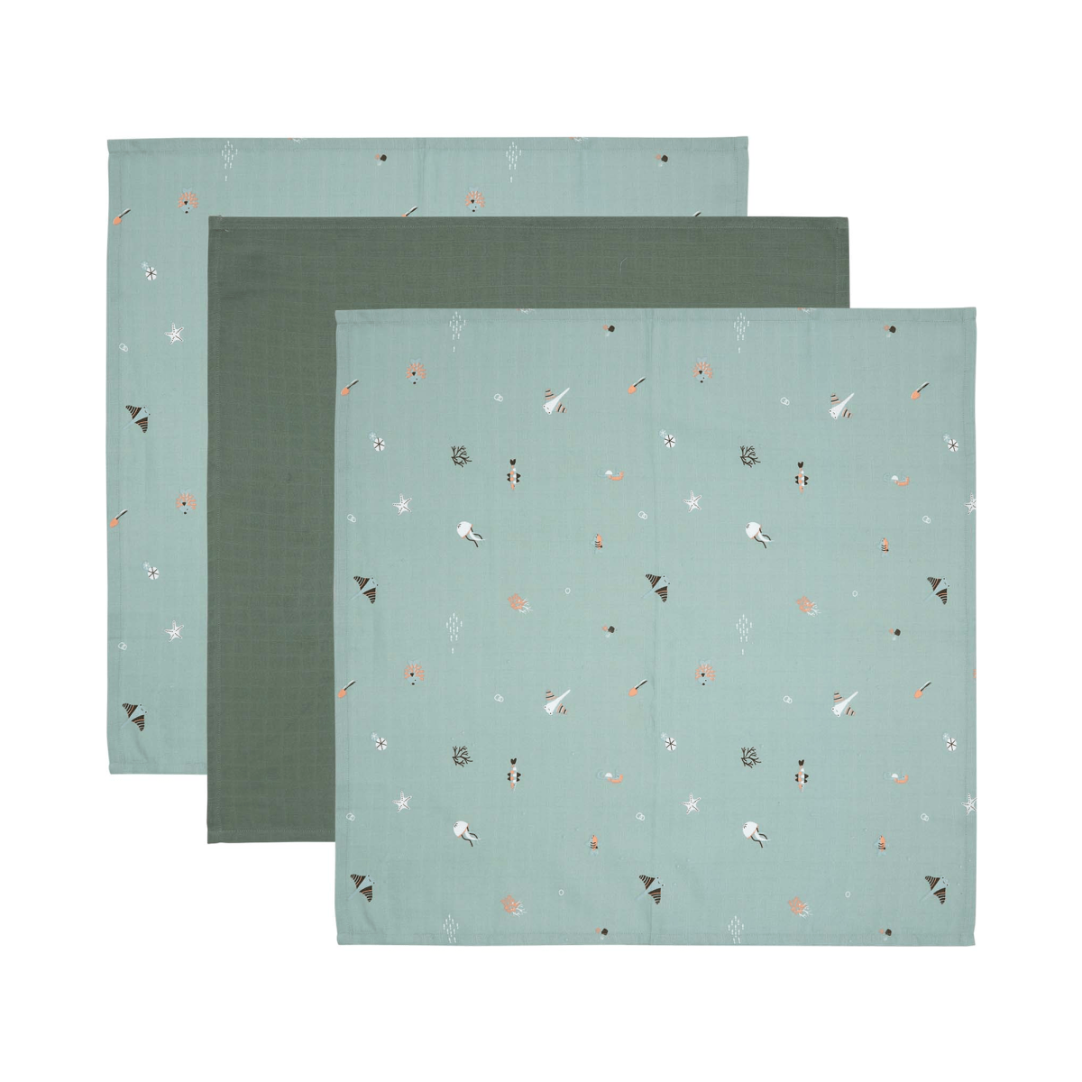 Nach dem Baden kannst du dein Liebling mit den Mulltüchern „Ocean Vibes“ von bébé-jou trocken und warm halten. Sie sind saugstark und sehr angenehm zu der empfindlichen Haut deines Babys.