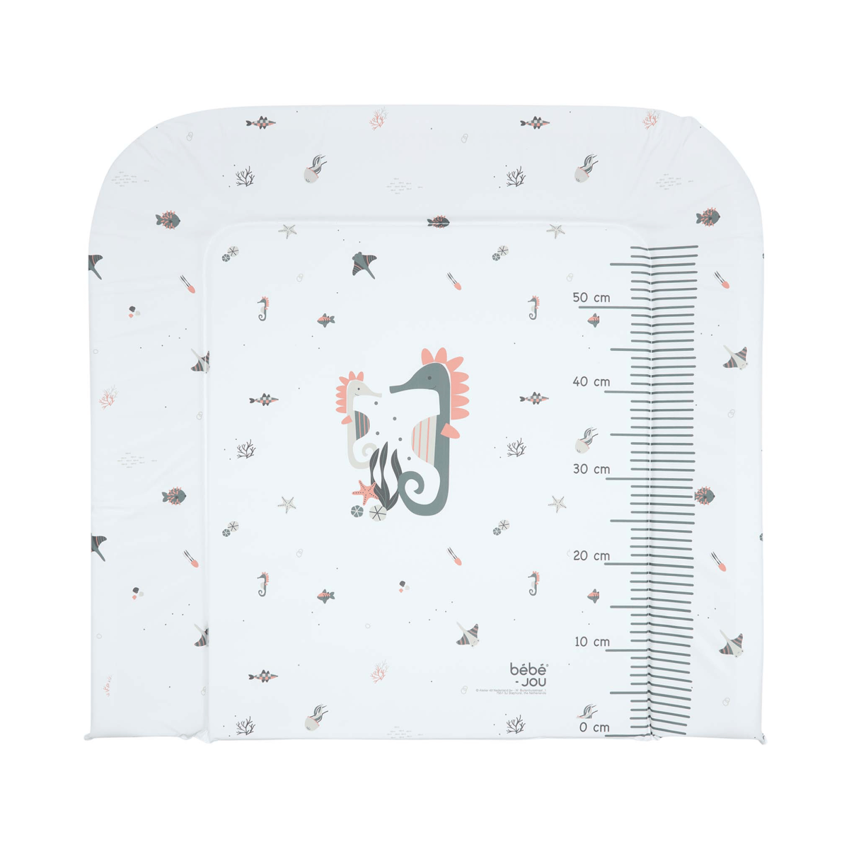 Mit der Wickelauflage „Ocean Vibes“ von bébé-jou tauchst du gemeinsam mit deinem Baby in eine Welt voller Meereszauber ein. Ausgestattet mit einem hochelastischen Komfortschaum bietet diese Wickelauflage nicht nur einen unvergleichlichen Komfort, sondern auch eine längere Lebensdauer. Dank ihrer wasserdichten und abnehmbaren Eigenschaften ist die Auflage besonders pflegeleicht und hygienisch. Die speziellen druckentlastenden Eigenschaften sorgen für eine optimale Unterstützung von Kopf und Nacken deines kleinen Schatzes. Zusätzlich sorgt die einzigartige „U-Form“ dafür, dass dein Baby beim Wickeln und Anziehen immer stabil in der Mitte bleibt. So kannst du dich voll und ganz auf die wertvolle Zeit mit deinem Baby konzentrieren.
