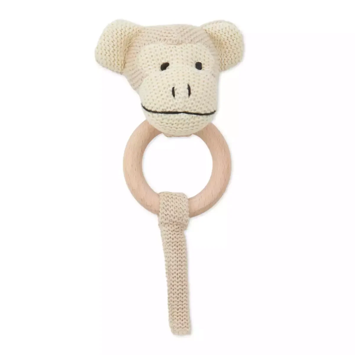 Als Zahnungshilfe stärkt der Holzring den Gaumen deines Babys und hilft den Zahnungsschmerz zu lindern. Wenn der süße Affe geschüttelt wird, rasselt er fröhlich und fördert so spielerisch die Feinmotorik und den Gehörsinn deines Babys. Das dezente Design macht das Lernspielzeug zu einem stylischen Begleiter.