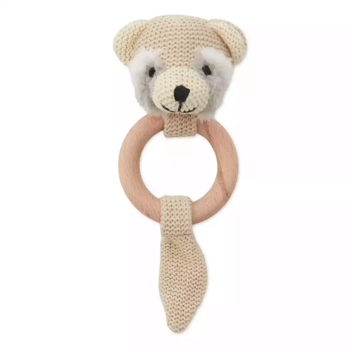 Als Zahnungshilfe stärkt der Holzring den Gaumen deines Babys und hilft den Zahnungsschmerz zu lindern. Wenn der süße Waschbär geschüttelt wird, rasselt er fröhlich und fördert so spielerisch die Feinmotorik und den Gehörsinn deines Babys. Das dezente Design macht das Lernspielzeug zu einem stylischen Begleiter.