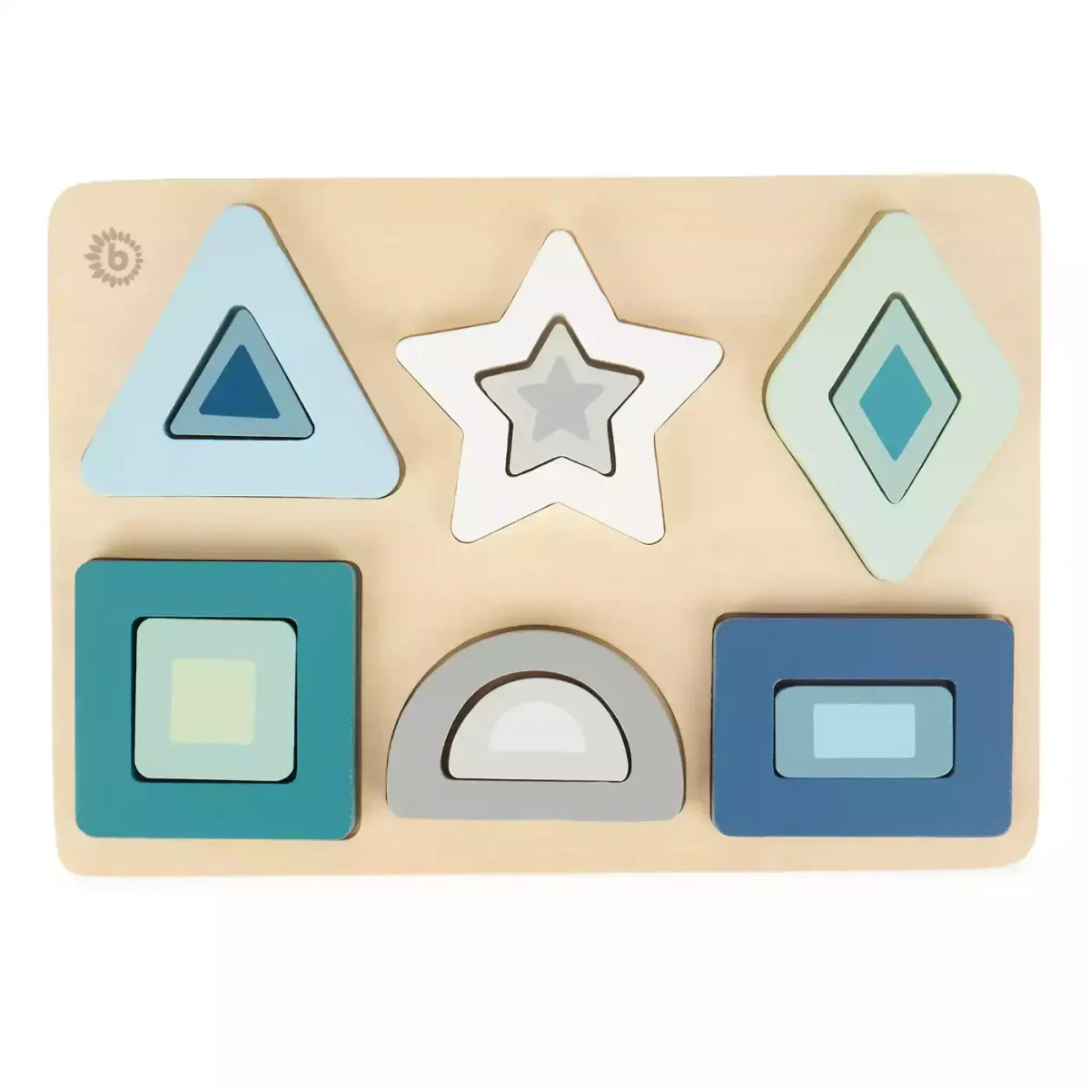 Das wunderschöne Holzpuzzle von Bieco fördert spielerisch die Motorik deines Kindes und schult das Gefühl für Formen und Farben. Es besteht aus einer Grundplatte mit verschiedenen Aussparungen und 12 Teilen in geometrischen Formen. Die Puzzleteile müssen richtig zusammengefügt und in die passenden Formen eingesetzt werden.