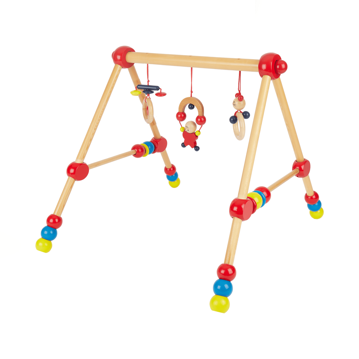 Die schönen bunten Spielelemente über dem Kopf und an den Seiten sind Dank der Höhenverstellbarkeit des Holzspielzeuges für dein Baby einfach zu erreichen. Ganz nebenbei fördert das kunterbunte Spieltrapez auch die Hand-Augen-Koordination und die Motorik.