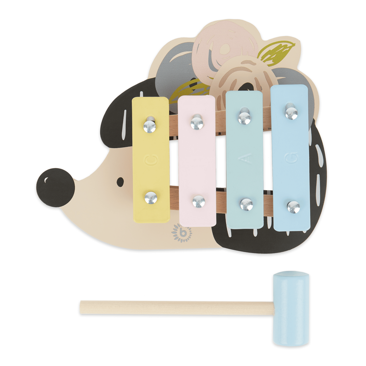 Mit dem Mini Xylophon Igel von bieco kann dein kleiner Schatz Zuhause oder auch, dank der handlichen Größe, unterwegs musizieren. Der Holzschläger ist optimal für die kleinen Hände und die Tonmarkierung erleichtert das Notenlernen. Vier Töne und Farben kreieren wunderschöne Melodien.