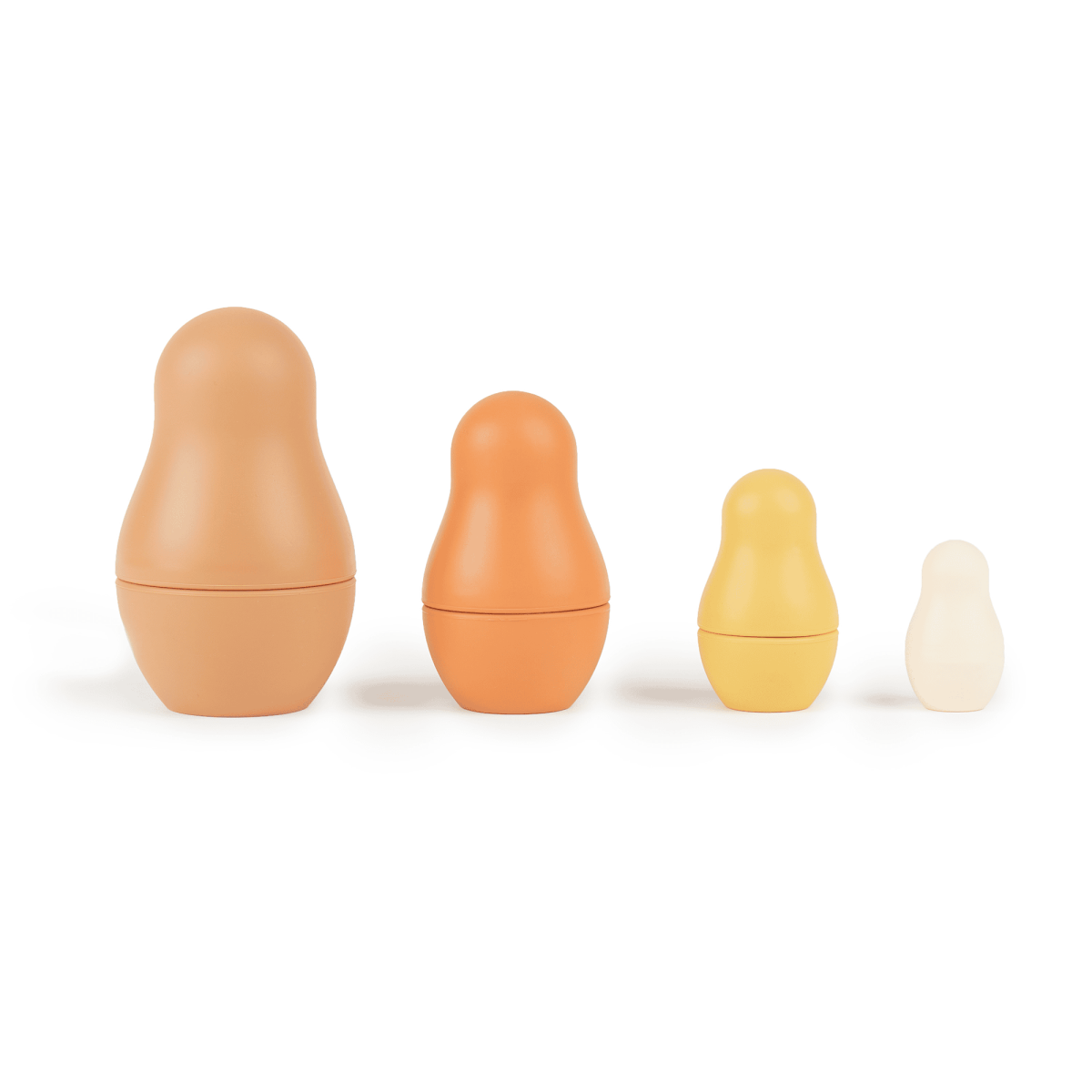 Die Matroschka besteht aus vier Püppchen mit insgesamt sieben Teilen, die für stundenlangen Spaß sorgen. Die einfache Reinigung mit Wasser und milder Seife macht sie auch für dich als Elternteil praktisch. Die ab etwa einem Jahr geeignete Puppe ist unabhängig getestet und auf Schadstoffe geprüft, um die Sicherheit deines Kindes zu gewährleisten. Lass dein Kind mit diesen entzückenden Silikon-Matroschkas die Welt der Farben und Formen erkunden!