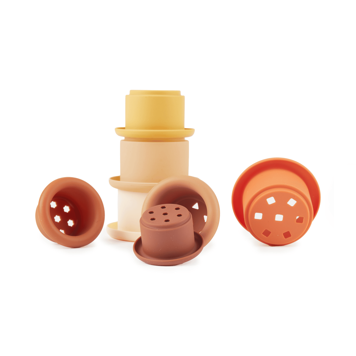 Die Silikon-Stapelbecher von bieco sind ein 7-teiliges Becherset aus hochwertigem Silikon, das speziell für die kleinen Hände deines Kindes entwickelt wurde. Diese Becher sind nicht nur farbenfroh und ansprechend, sondern auch äußerst funktional: Sie bieten eine unterhaltsame Möglichkeit, die Koordination und Feinmotorik deines Lieblings spielerisch zu fördern. Ob in der Badewanne planschend oder am sonnigen Strand, diese Stapelbecher sorgen immer für fröhlichen Spielspaß. Das robuste Silikonmaterial macht sie außerdem besonders langlebig und bruchsicher.