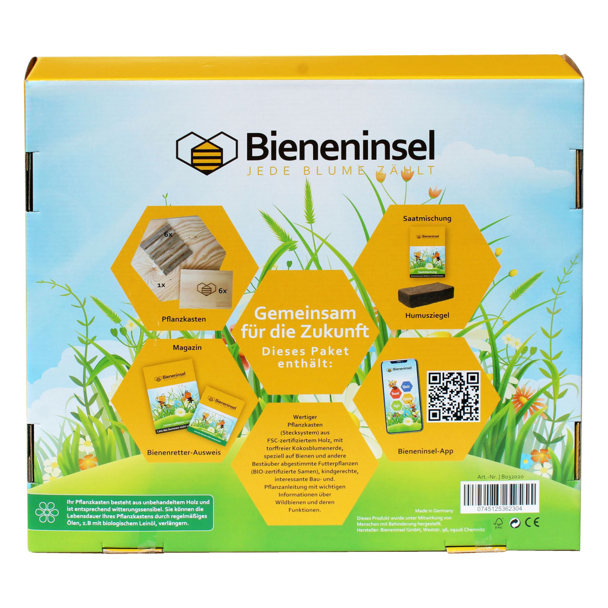Mit der Bieneninsel rettet dein kleiner Schatz die Wildbienen und kann gleichzeitig einen großen Spaß erleben. Ein hochwertiger Pflanzkasten mit einem leichten Stecksystem, torffreie Kokosblumenerde und BIO-Saatgut für bienenfreundliche Futterpflanzen sind in dem Set enthalten. Der Pflanzkasten besteht aus FSC-zertifiziertem Holz. Dadurch wird für eine nachhaltigere Waldwirtschaft gesorgt.