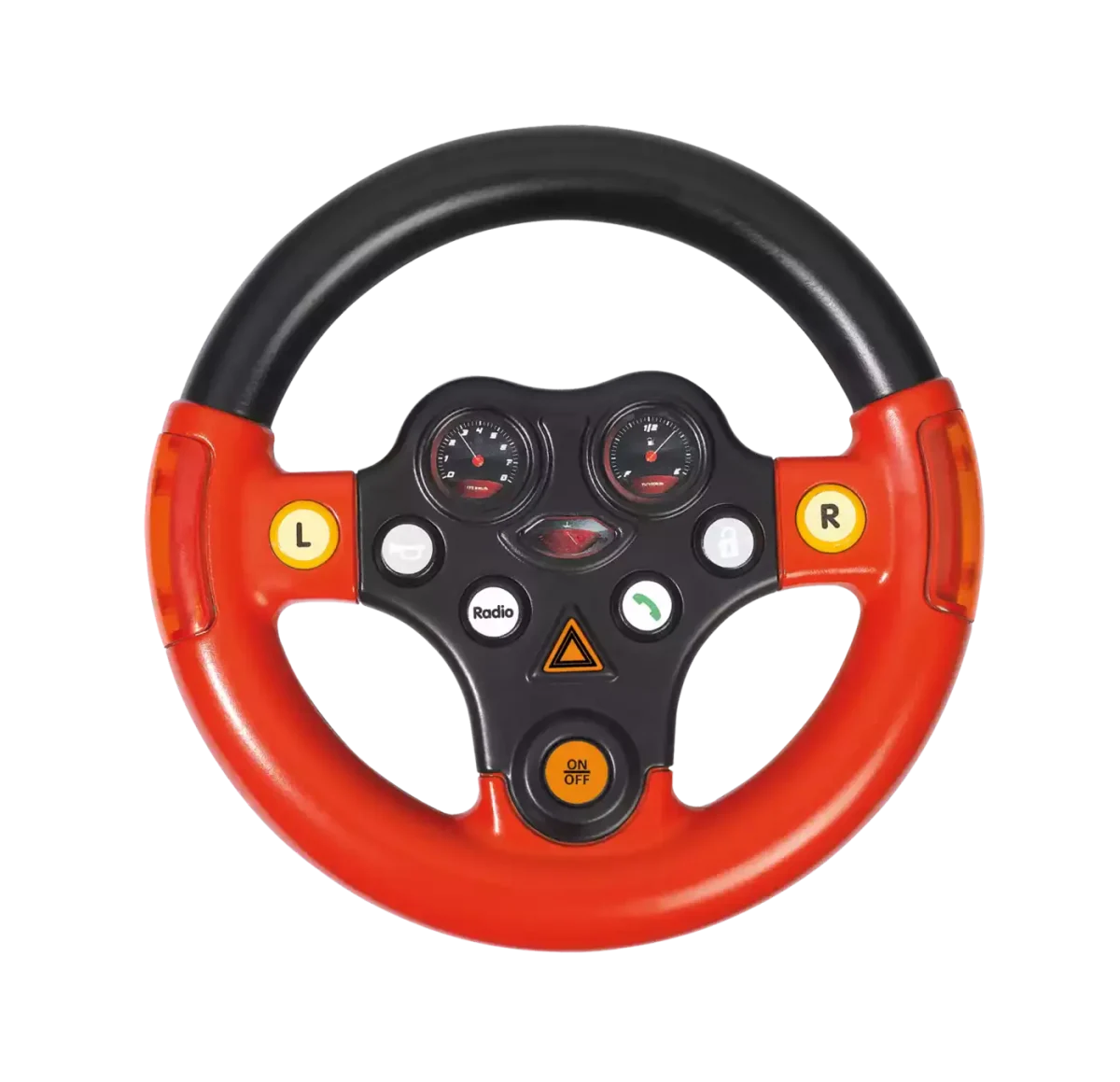Mit der Nachrüstung dieses Lenkrades erwartet die BIG Bobby Car-Fahrer ein ganz exklusives Fahrerlebnis. Es lässt sich mit den im Lieferumfang enthaltenen Schrauben problemlos an allen Bobby Cars ab Baujahr 2010 befestigen. Bei dem Betätigen der kindgerechten Tasten ertönen Originalsounds der großen Fahrzeuge.