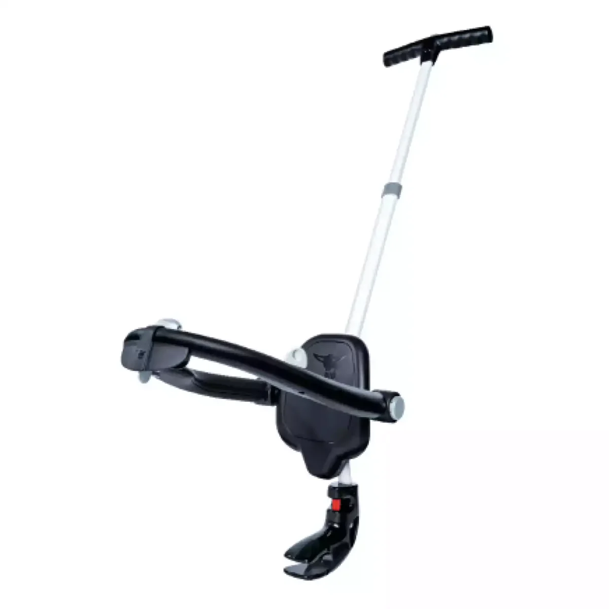 Die integrierte Rückenlehne bietet deinem Kind Halt und mithilfe des neuen ergonomischen Griffs ist auch eine zweihändige Steuerung möglich – dies erleichtert dem Kind das Fahren und macht es dir noch komfortabler. Das leicht bedienbare Teleskopgestänge ist 4-fach höhenverstellbar und für platzsparenden Transport in die Transportposition zu bringen. Die Montage erfolgt sehr einfach mit einem an der Schubstange bereits fixierten Kupplungsstift.