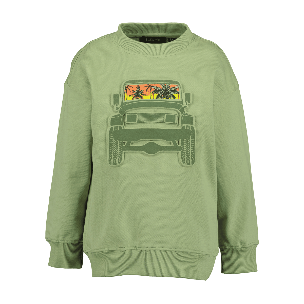 Das Sweatshirt Truck von Blue Seven ist ein cooler Begleiter für die Übergangszeit und begeistert mit seinem auffälligen Auto-Print samt tropischem Sonnenuntergang. Aus 100% weicher Baumwolle gefertigt, bietet es deinem kleinen Schatz ein rundum angenehmes Tragegefühl. Die breiten Bündchen an Ärmeln und Saum sorgen für einen guten Sitz und erleichtern das An- und Ausziehen.