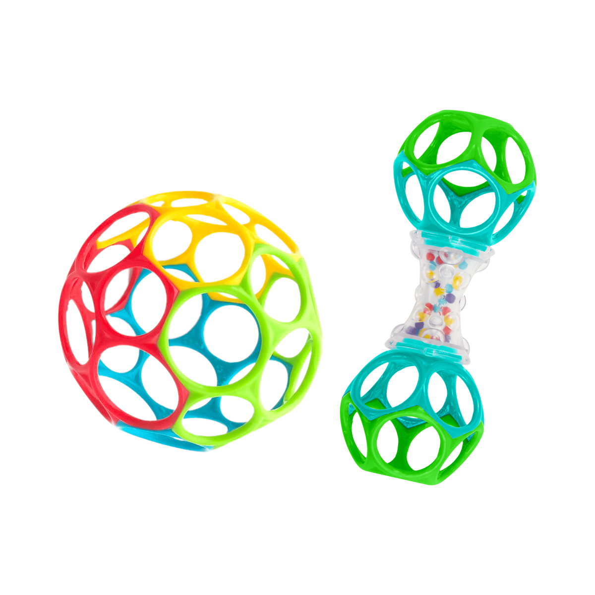 Das Geschenkset „Grasp the Day“ von Bright Starts enthält zwei der beliebtesten Oball-Spielzeuge, die deinem Kind bereits ab der Geburt Freude bereiten. Die Spielzeuge sind mit ihren leicht greifbaren Details und Grifflöchern perfekt für kleine Hände und fördern die Feinmotorik spielerisch. Der Oball Shaker beeindruckt mit einem durchsichtigen, strukturierten Griff und bunten Perlen, die faszinierende Geräusche machen, die flexiblen Enden bestehen aus dem bewährten Oball-Material. Der Oball Classic begeistert mit 32 großen Grifflöchern und einem weichen, stabilen Design, ideal zum Greifen, Schütteln und Rollen.
