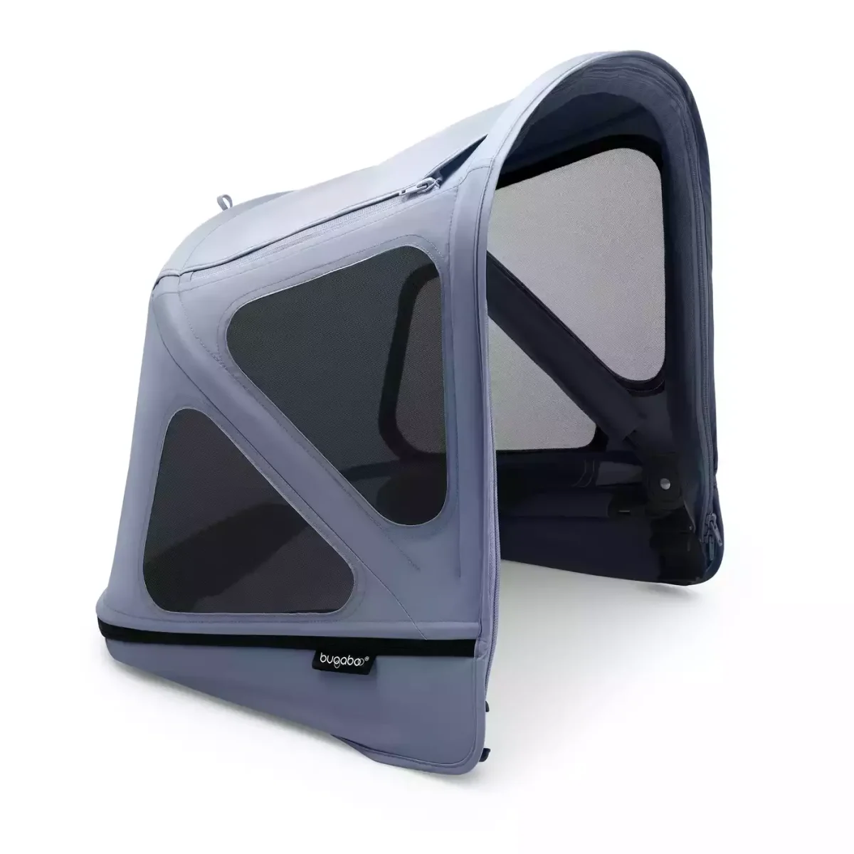 Das Bugaboo Donkey Sonnendach Breezy Seaside Blue mit Lüftungsfenstern bietet einen Lichtschutzfaktor von 50+ (30+ im Bereich der Mesh-Einsätze) und schützt deinen kleinen Liebling von Kopf bis Fuß vor der Sonne und Insekten. Die integrierten Mesh-Einsätze stellen eine optimale Luftzirkulation her und sorgen an heißen Tagen für einen besseren Temperaturausgleich. Das integrierte Moskitonetz passt über die Liegewanne und den Sitz des Kinderwagens. Zudem gibt es auch ein spezielles Peek-a-boo-Fenster, damit du jederzeit nach deinem Schatz sehen kannst.