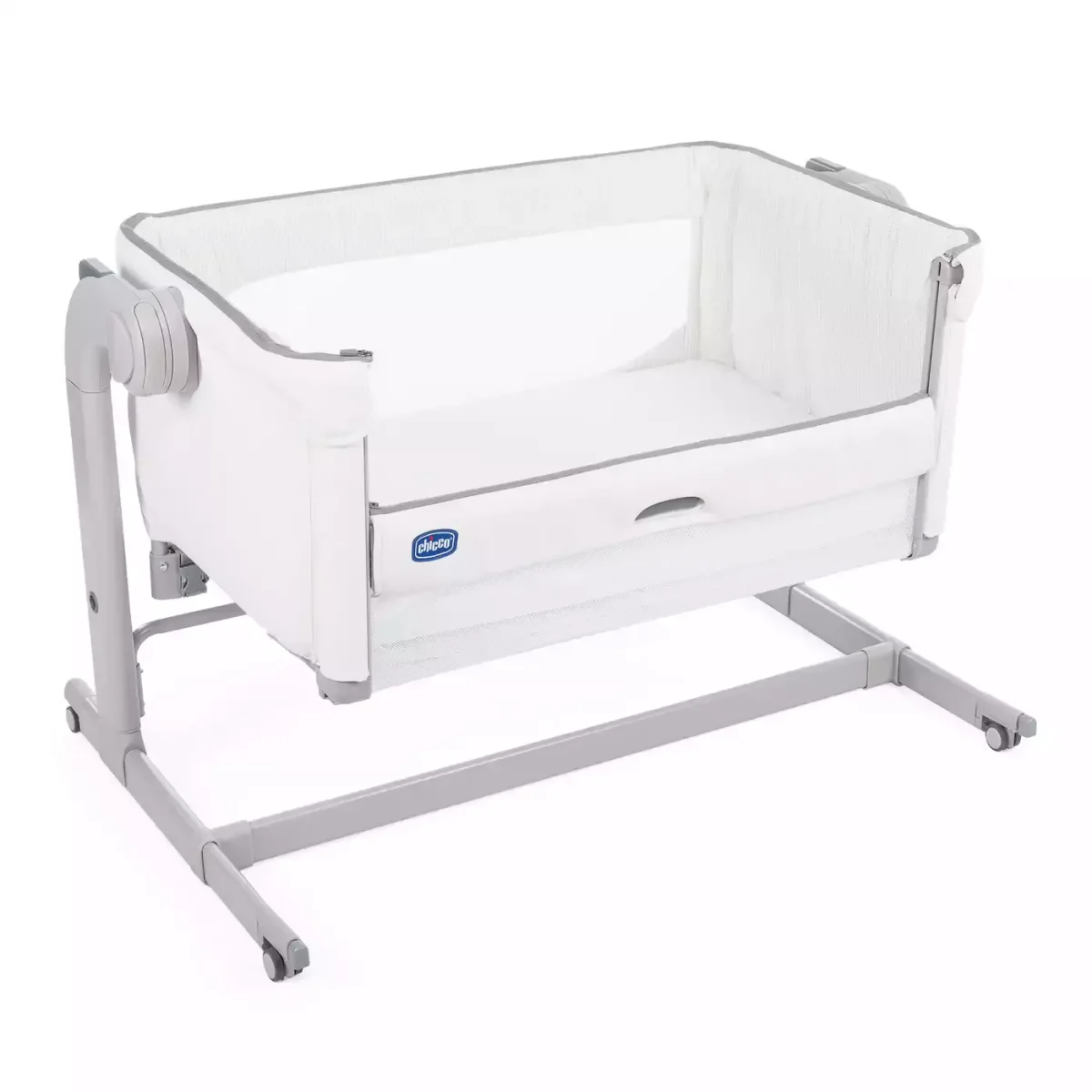 Das wunderschöne Beistellbett Next2Me Magic White Snow von Chicco kannst du schon ab der Geburt nutzen. Es erhöht den Schlafkomfort für dich und deinen kleinen Schatz. Die Seite des Bettchens kannst du ganz einfach einhändig öffnen und schließen, selbst wenn das Bettchen am Elternbett befestigt ist.