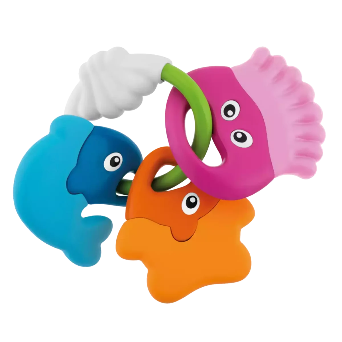 Der bunte Greifling ist mit drei Meerestieren ausgestattet, die aus weichem Gummi bestehen. Er eignet sich ideal für Kinder ab ca. 3 Monaten und ist eine tolle Unterstützung während der Zahnungsphase. Durch Beißen am Gummi lassen sich die Kinder beruhigen und sind schnell abgelenkt.
