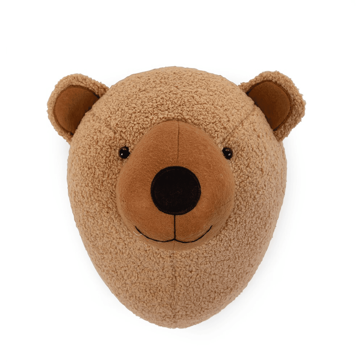 Dieser süße Teddybär ist der neue Freund deines kleinen Tierliebhabers. Der Bärenkopf hängt wunderschön über jedem Bett. Der süße Braunbär schafft sofort eine spielerische Atmosphäre im Kinderzimmer. Diese Wanddekoration mit weicher Füllung hat einen gehärteten Rücken und lässt sich leicht mit einer Aufhängeöse an der Wand befestigen. Die Bären Trophäe wird von allen Kindern geliebt und passt in jedes Interieur.
