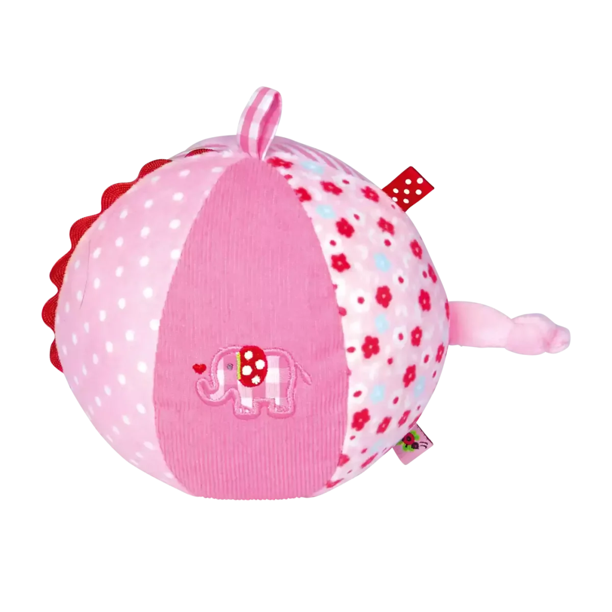 Der rosafarbene Stoffball mit Glockenspiel aus der wunderschönen Serie „BabyGlück“ eignet sich optimal zum Spielen und Lernen, aber ebenso auch zum Schmusen und Liebhaben. Der Ball fördert die Motorik des Kindes und das integrierte Glockenspiel erregt gleichzeitig die Aufmerksamkeit. Der Stoffball kann bei 30°C gewaschen werden – so bleibt er von Geburt an für lange Zeit ein treuer Begleiter. Der kuschelweiche Ball im Materialmix ist ein wunderbares Spielzeug für angehende Fußballprofis und alle anderen Babys.