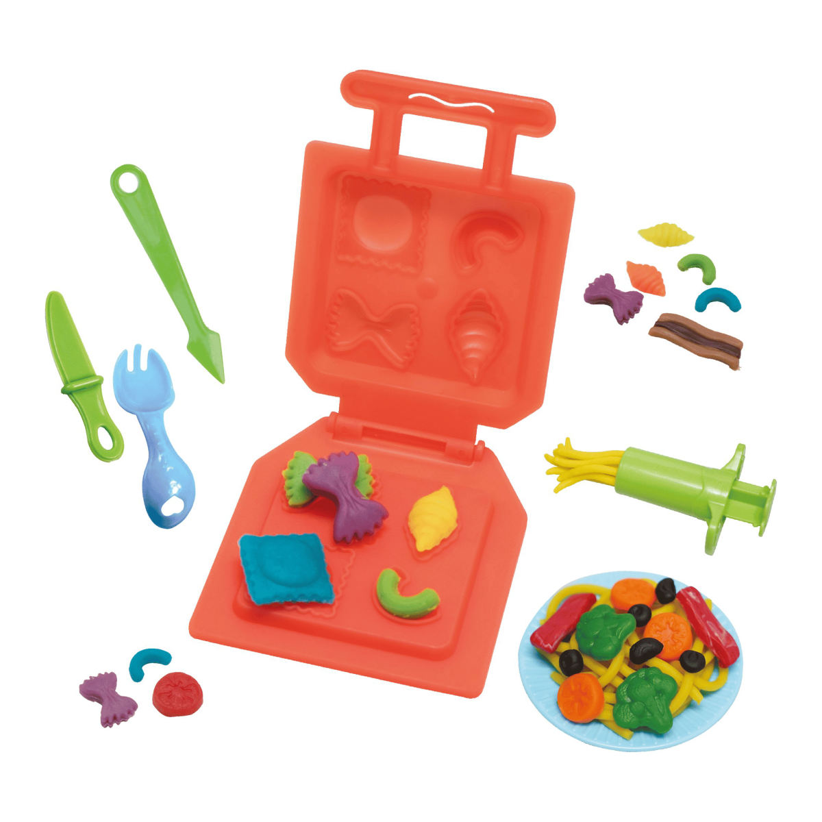 Mit diesem tollen Knet-Set von Creathek kann dein kleiner Schatz spielerisch seine eigene Pasta aus Knete herstellen! Das Set besteht aus neun Teilen: Drei Packungen Knete mit je 38 Gramm Inhalt in verschiedenen Farben, einem Teller, einer Knetform, einer Gabel, einem Messer, einer Spritze sowie einem Modelierwerkzeug. So kann der Spaß sofort losgehen!