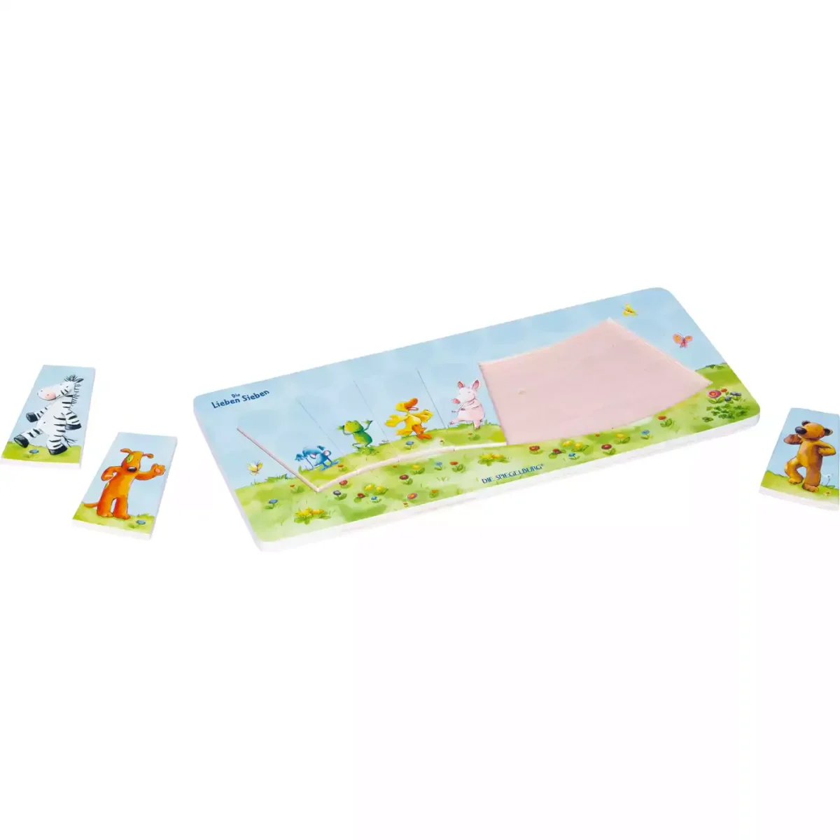 Aus sieben kleinen Teilen wird ein großes Ganzes! Das Holz-Panorama-Puzzle „Die Lieben Sieben“ bringt kleinen Puzzlefans großen Spaß. Bestehend aus 7 Puzzleteilen mit niedlichen Tieren.
