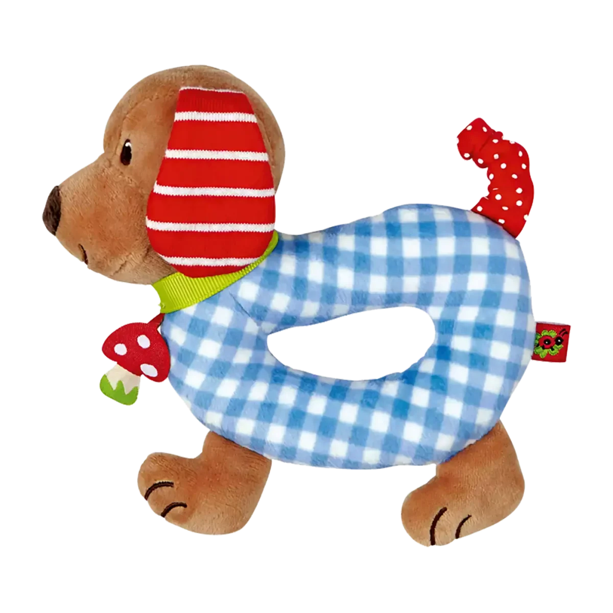 Das kleine knuffige Hündchen wird ein treuer Begleiter für die Allerkleinsten sein. Die Rassel ist leicht zu greifen und zu halten. Die hochwertige Stickerei sieht toll aus und fördert gleichzeitig die Entwicklung des Babys.