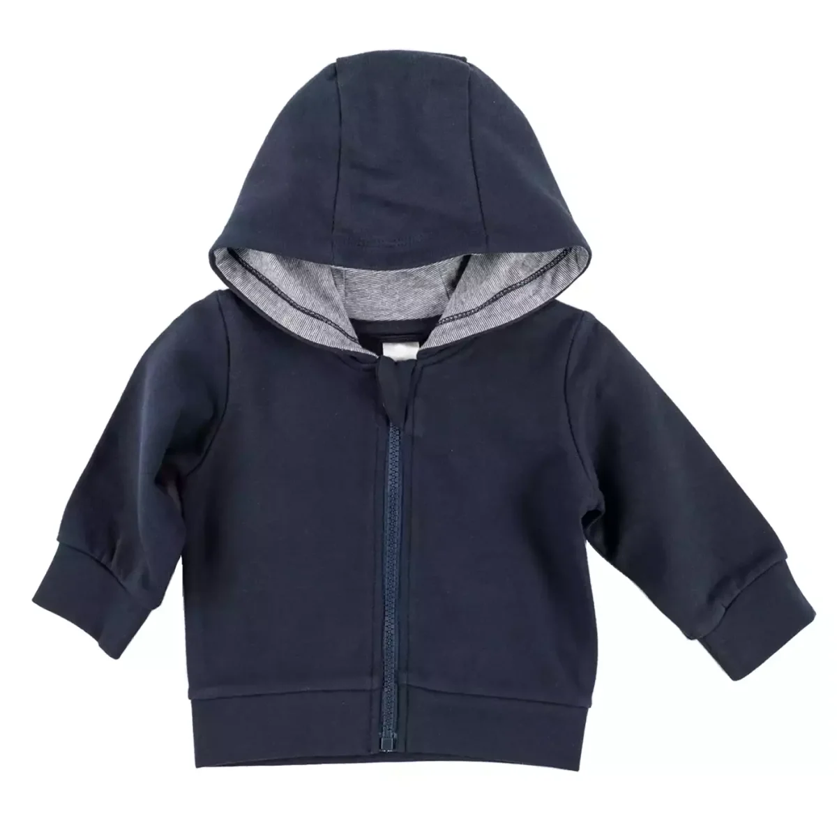 Die niedliche schlichte Sweatjacke mit Kapuze von Dimo-Tex ist mit einem langen Reißverschluss ausgestattet, welcher das An- und Ausziehen erleichtert. Außerdem ist sie mit einem Kinnschutz versehen.