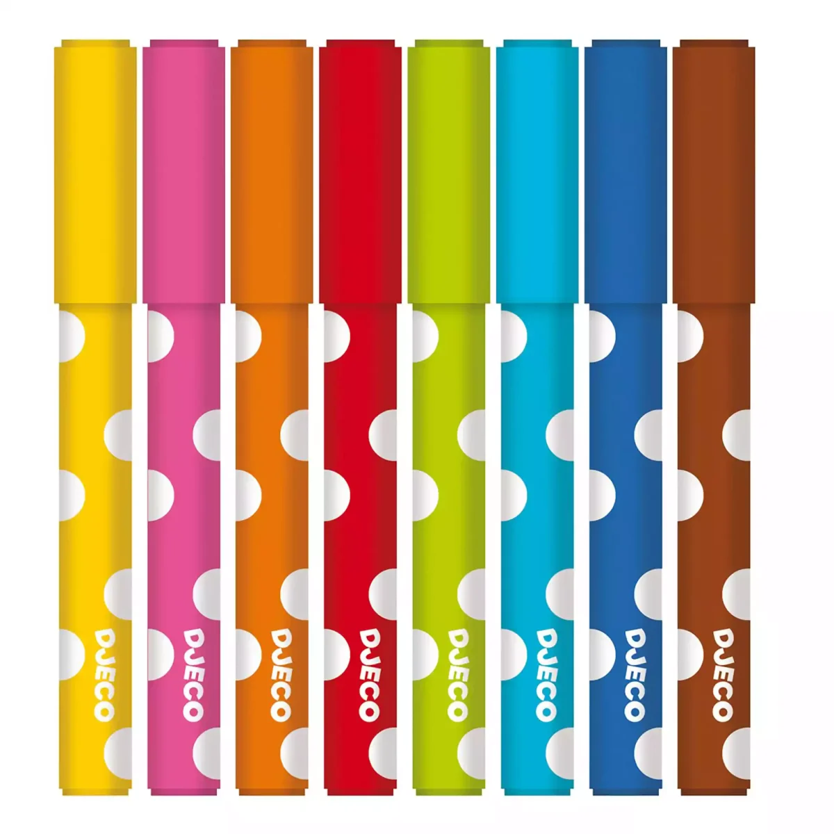 Die DJECO Filzstifte können schon die Kleinsten halten, denn sie sind schön kurz und dick und daher leicht zu greifen. Dein kleiner Schatz kann mit den insgesamt 8 bunten Farben hübsche hübsche Bilder malen. Außerdem fördern die Stifte die Motorik und die Kreativität, markieren gut und sind ultra abwaschbar.