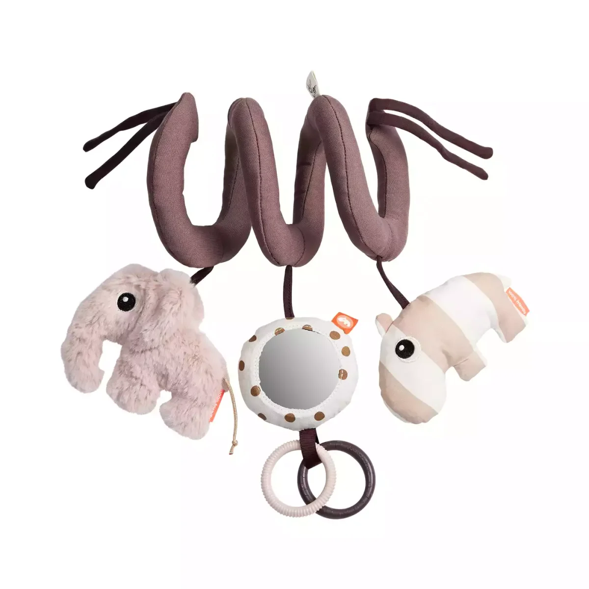 Die Activity Spirale von done by deer lädt dein Baby zum Greifen, Spielen und Entdecken ein und fördert erste Hand-Auge-Koordination. Soft Elphee wird dich mit sanften Berührungen und einem süßen Rasseln begeistern. Drücke Nozos Bauch und höre das Knistern. Der kleine Spiegel ist perfekt für neugierige Augen und juckendes Zahnfleisch kann in den beiden Beißringen Erleichterung finden. Die flexible Spirale kann ganz einfach am Babybett, Babyschale, Kinderwagen oder sogar am Arm der Mama befestigt werden.