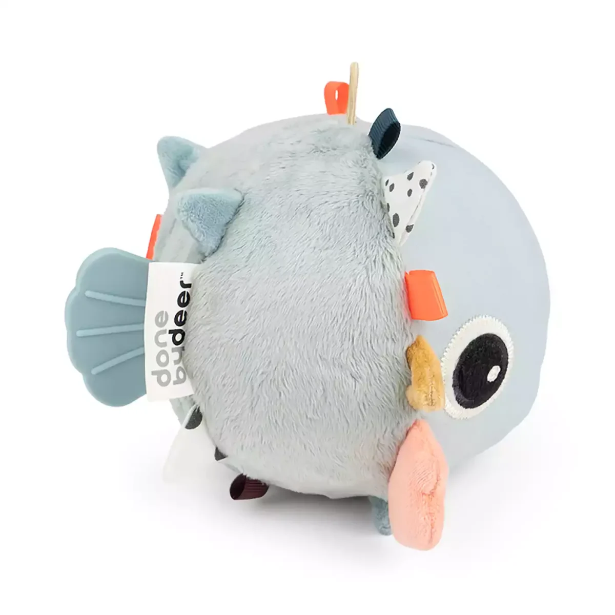 Lass die neugierigen Augen und kleinen Finger deines Kindes die vielen Sinnesfunktionen des Puffee Aktivitätsballs von done by deer kennenlernen. Dein Kind kann sich an den weichen Stacheln und Flossen von Puffee festhalten und die aufregenden Knistergeräusche hören. Gib dem Puffee einen Schub und es wird ein faszinierendes Geräusch von sich geben, das dein Kind dazu anregt, ihm nachzukrabbeln. Der niedliche Silikon-Beißring in Form der Schwanzflosse von Puffee hat verschiedene Texturen, um juckendes Zahnfleisch zu stimulieren und zu beruhigen.