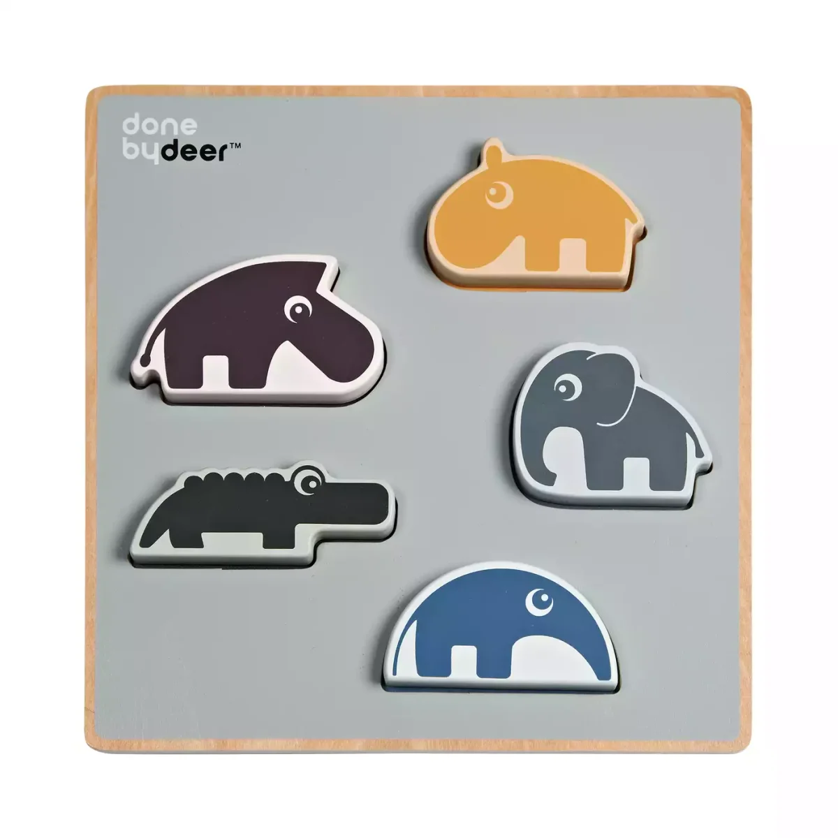 Das hölzerne Spielepuzzle von done by deer unterstützt die Entwicklung der motorischen Fähigkeiten deines Kindes. Kleine Finger können die klobigen Spielsteine leicht greifen und Elphee, Antee, Croco, Ozzo und Zebee helfen, ihren Weg zurück an ihren Platz zu finden. Die Puzzleteile sind beidseitig bedruckt und können sowohl zum Spielen als auch zur Dekoration im Kinderzimmer verwendet werden.