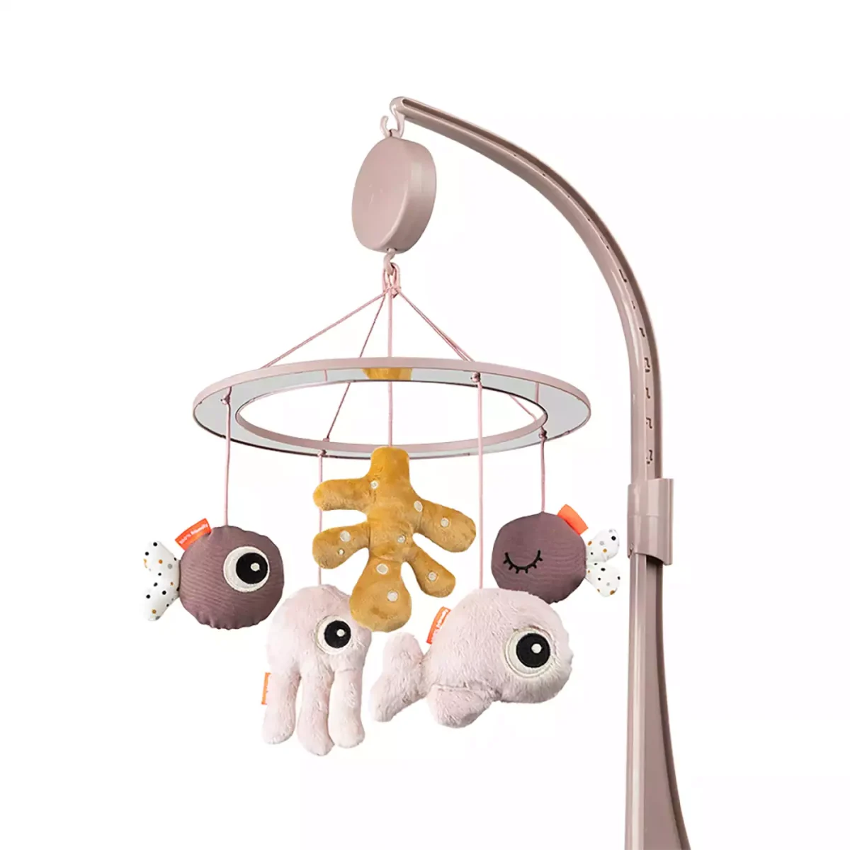Lass deinen kleinen Schatz den beruhigenden Klang von „Mozarts Wiegenlied“ genießen und Spaß beim Entdecken der Spiegelungen im Spiegel, der über den verschlafenen Meeresfreunden schwebt, haben. Jelly, Wally und ihre kleinen Fischfreund stimulieren sanft die Sinne deines Babys und unterstützen die frühe Entwickelung mit kontrastierenden Punkten und Streifen. Der mitgelieferte Haltearm kann problemlos an den Stangen von Krippen, Kinderbetten oder Laufgittern montiert werden.