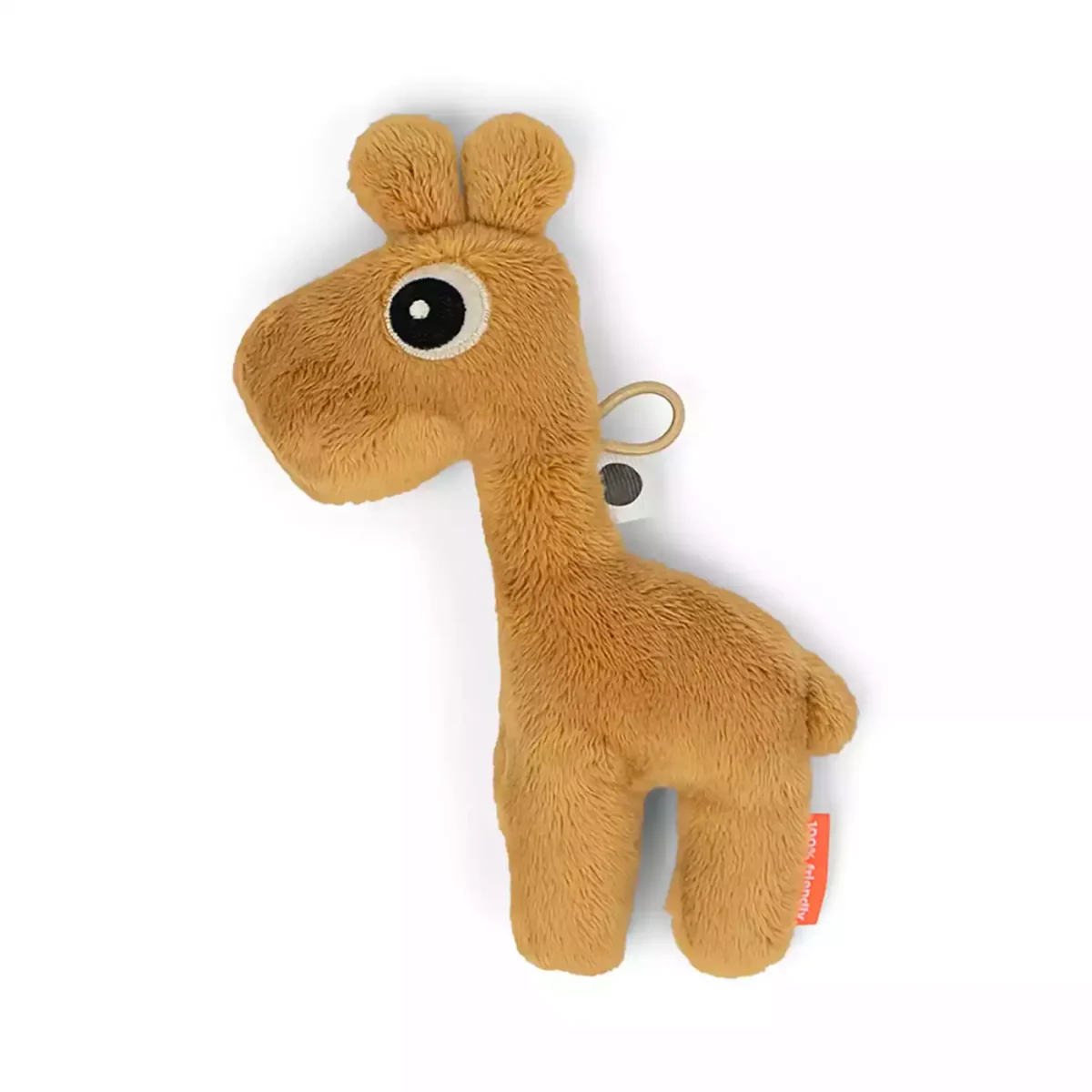 Diese Giraffenrassel von done by deer ist ein perfektes erstes Spielzeug für kleine Finger zum Greifen. Wenn du Raffis Bauch leicht drückst, kannst du aufregende Knistergeräusche hören. Mit der elastischen Schlaufe lässt sich die kleine Sinnesrassel ganz einfach mit einem Spielzeugglied an einer Spielmatte, einem Kinderwagen oder an einem Autositz befestigen.