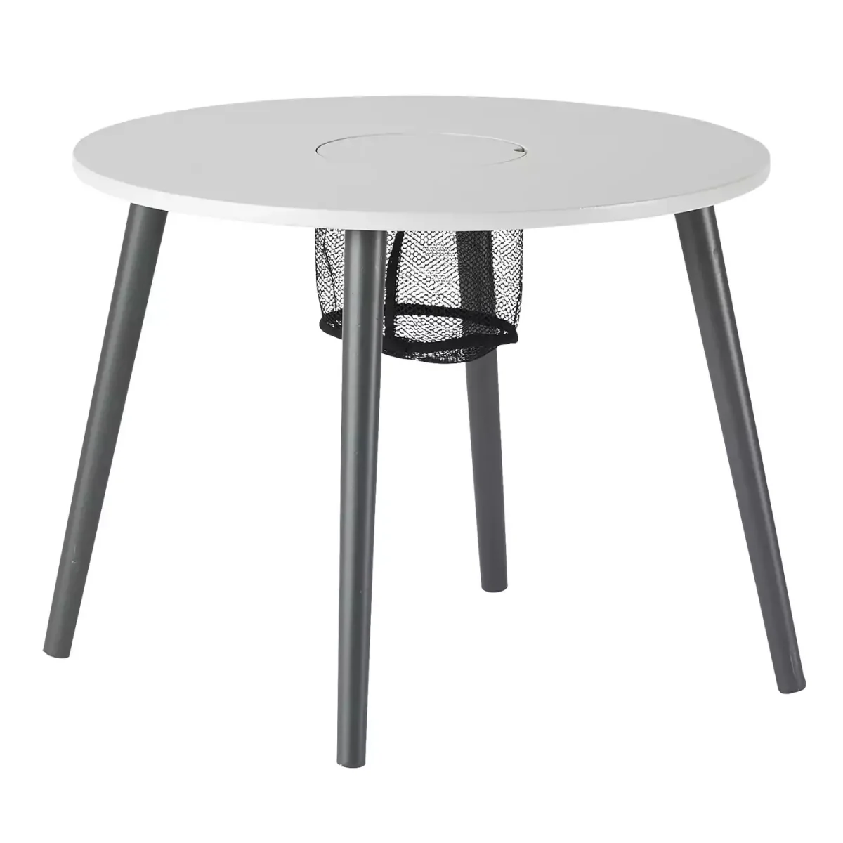 Der Spieltisch im schönen zweifarbigem Grau eignet sich perfekt zum Spielen. Der Tisch hat eine praktische Luke in der Mitte, die ein kleines Aufbewahrungsnetz für Spielzeug oder Geheimnisse verbirgt.