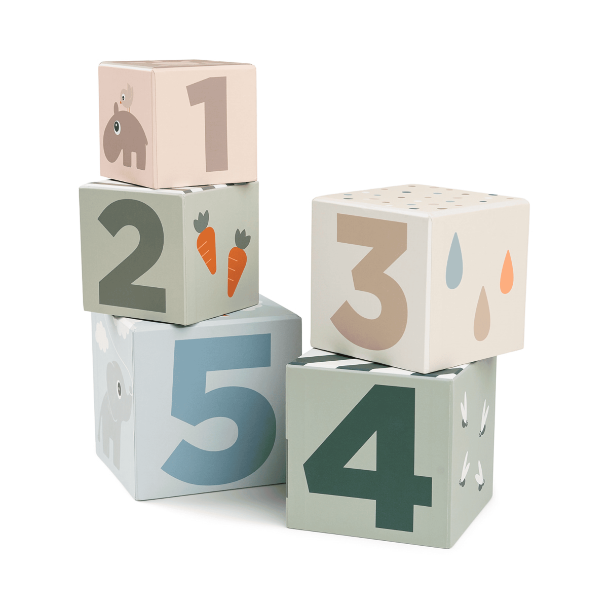 Die Stapelwürfel Deer Friends von done by deer bieten deinem kleinen Schatz endlose Spielmöglichkeiten. Die fünf Würfel in verschiedenen Größen von etwa 7 x 7 cm bis 13 x 13 cm in sanften Farben laden zum fröhlichen Stapeln, Umwerfen und Verstecken kleiner Schätze ein. Mit den liebevoll gestalteten Deer Friends lernt dein Kind spielerisch die Zahlen und die freundlichen Tiere kennenlernen. Diese Stapelwürfel fördern nicht nur die motorischen Fähigkeiten, sondern auch die Fantasie und die Freude am Entdecken.