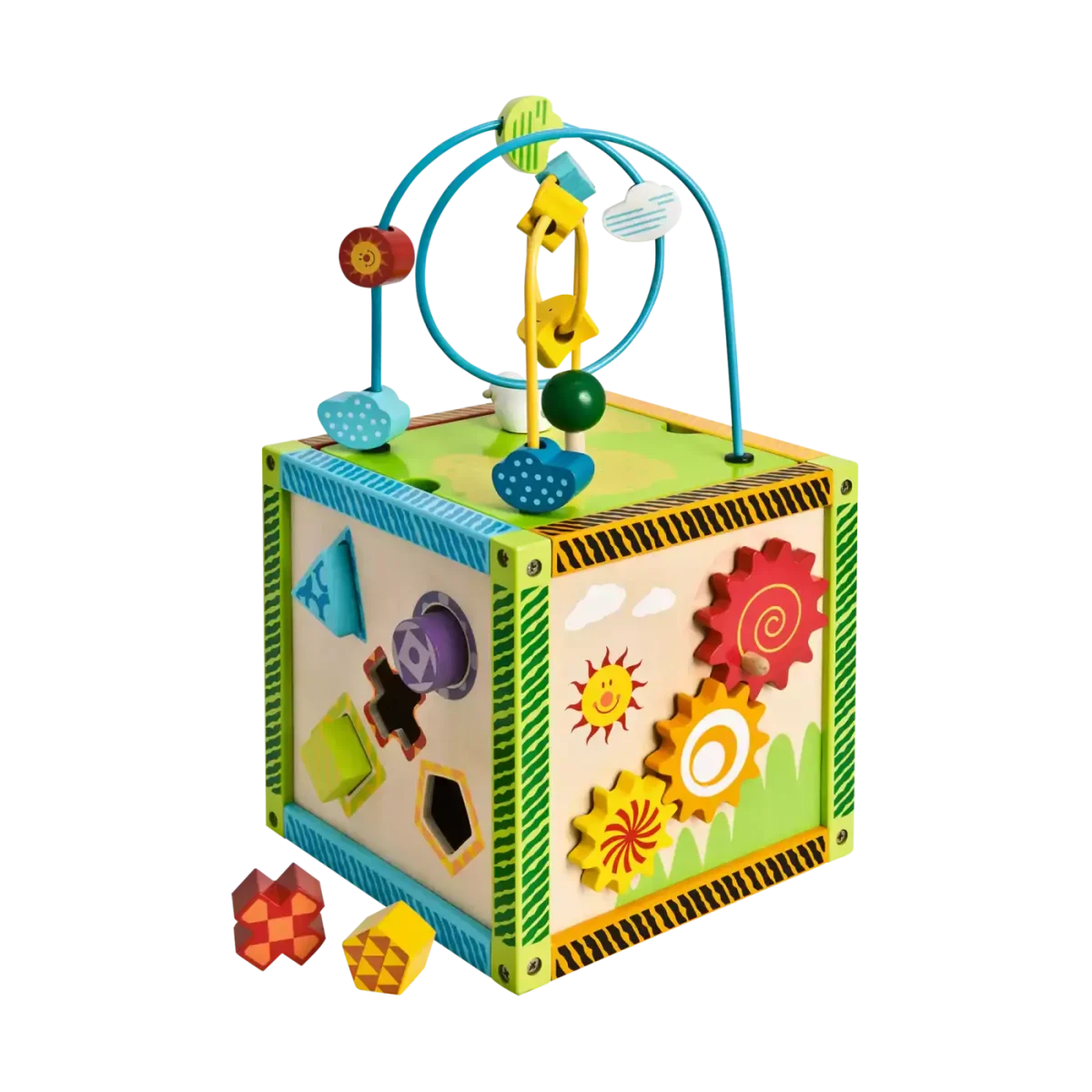 Der Motorikwürfel von Eichhorn garantiert unendlich viel Spielspaß durch die vielen unterschiedlichen Aktivitäten auf jeder Seite des Würfels. Die Spielmöglichkeiten fördern den Lernprozess der Kinder und unterstützen die Entwicklung der Feinmotorik. Der Würfel ist ausgestattet mit einer Motorikschleife, einer Uhr, einem Motorik – und Drehspiel und beinhaltet 5 Steckbausteine.