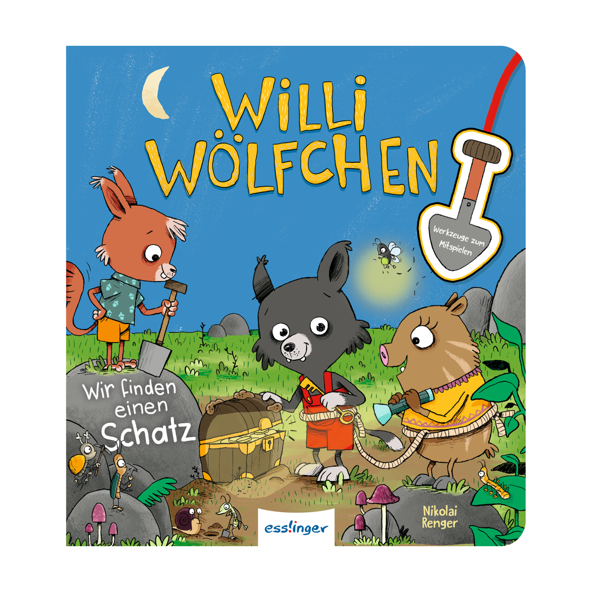 Das Bilderbuch Willi Wölfchen „Wir finden einen Schatz“ von ess!inger ist ein spannendes Abenteuer für kleine Schatzsucher ab ca. 3 Jahren. Gemeinsam mit Willi Wölfchen und seinen Freunden geht dein Kind auf eine fantasievolle Entdeckungsreise – mit dabei: eine Mitmach-Pappe mit vier extra Werkzeugen, die das Abenteuer lebendig werden lassen.